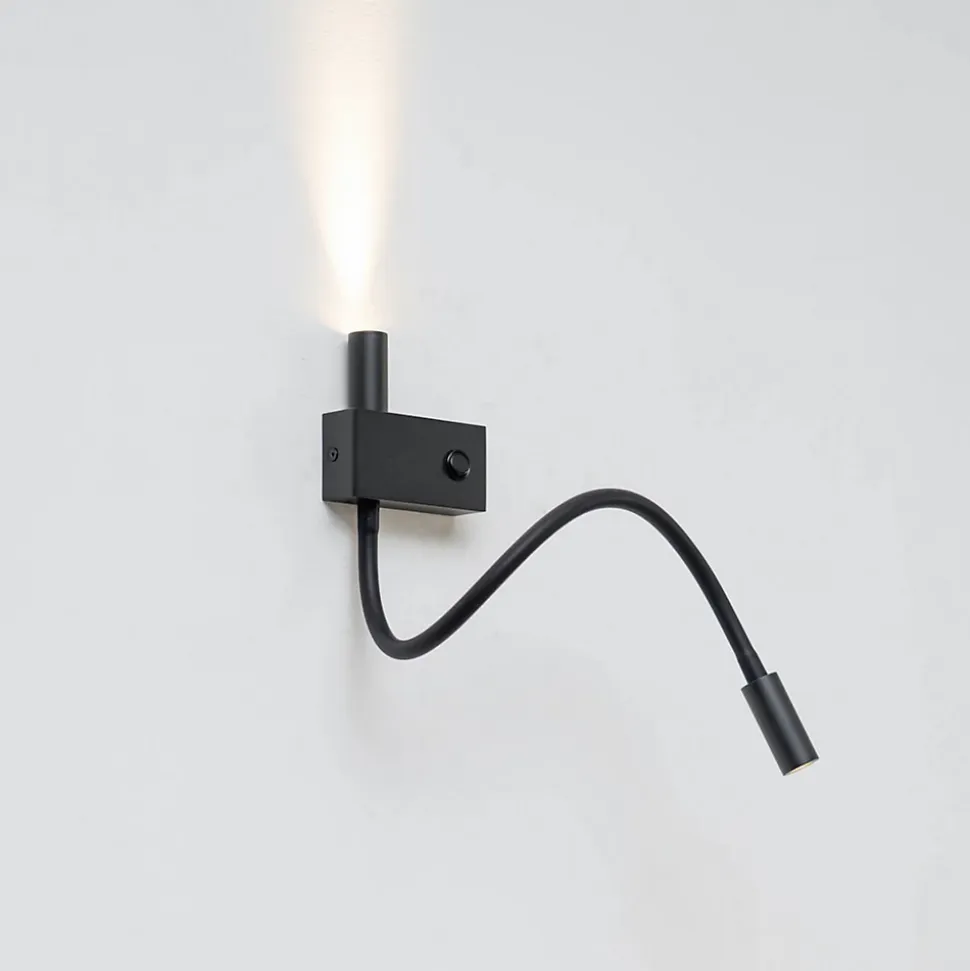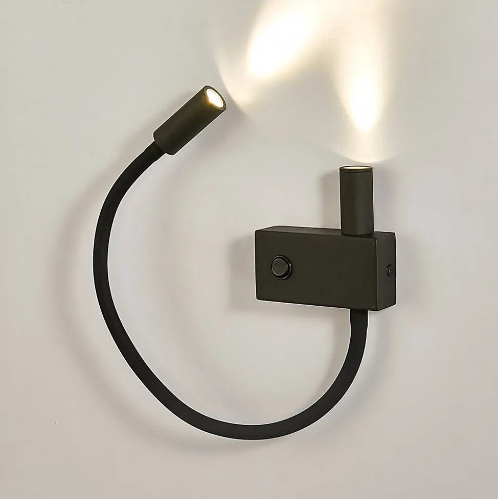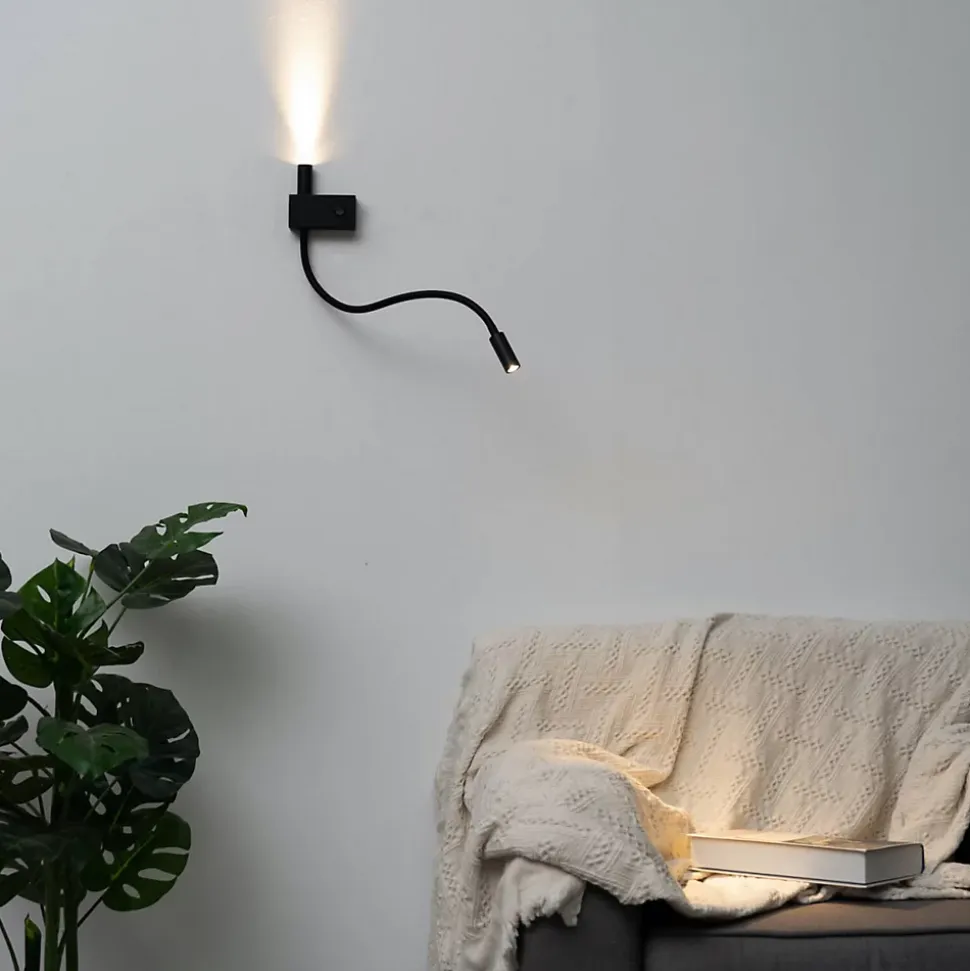 Nanda est une applique murale polyvalente dotée d’une fonction liseuse. Sa tête ajustable vers le haut diffuse une lumière ambiante, tandis que l’autre orientable vers le bas offre un éclairage idéal pour la lecture. Son design moderne avec un câble noir en fait un élément décoratif attrayant.) Livré monté, prêt à installer (