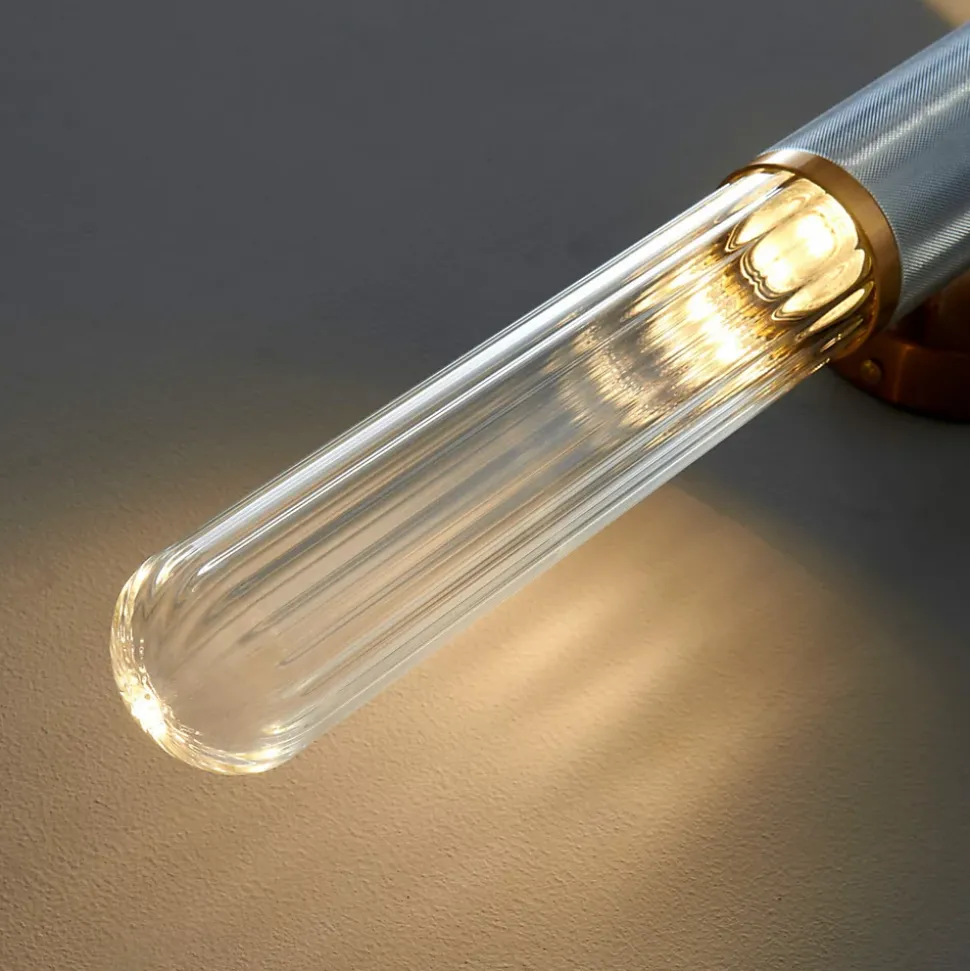 Avec sa structure en métal chromé et touches dorées, associée à deux cylindres en verre transparent, l’applique murale Hita offre un charme vintage qui s’intègre parfaitement dans tout intérieur, qu’il soit classique ou moderne. Mesurant 74 cm de hauteur sur 12 cm de profondeur, elle peut être installée horizontalement ou verticalement selon vos préférences. Simple à mettre en place, elle requiert deux ampoules GU10 pour un éclairage optimal. Disponible également avec un verre ambré et une structure chromée. Explorez toute la collection Hita pour une cohérence dans votre éclairage.) Assemblage simple requis (