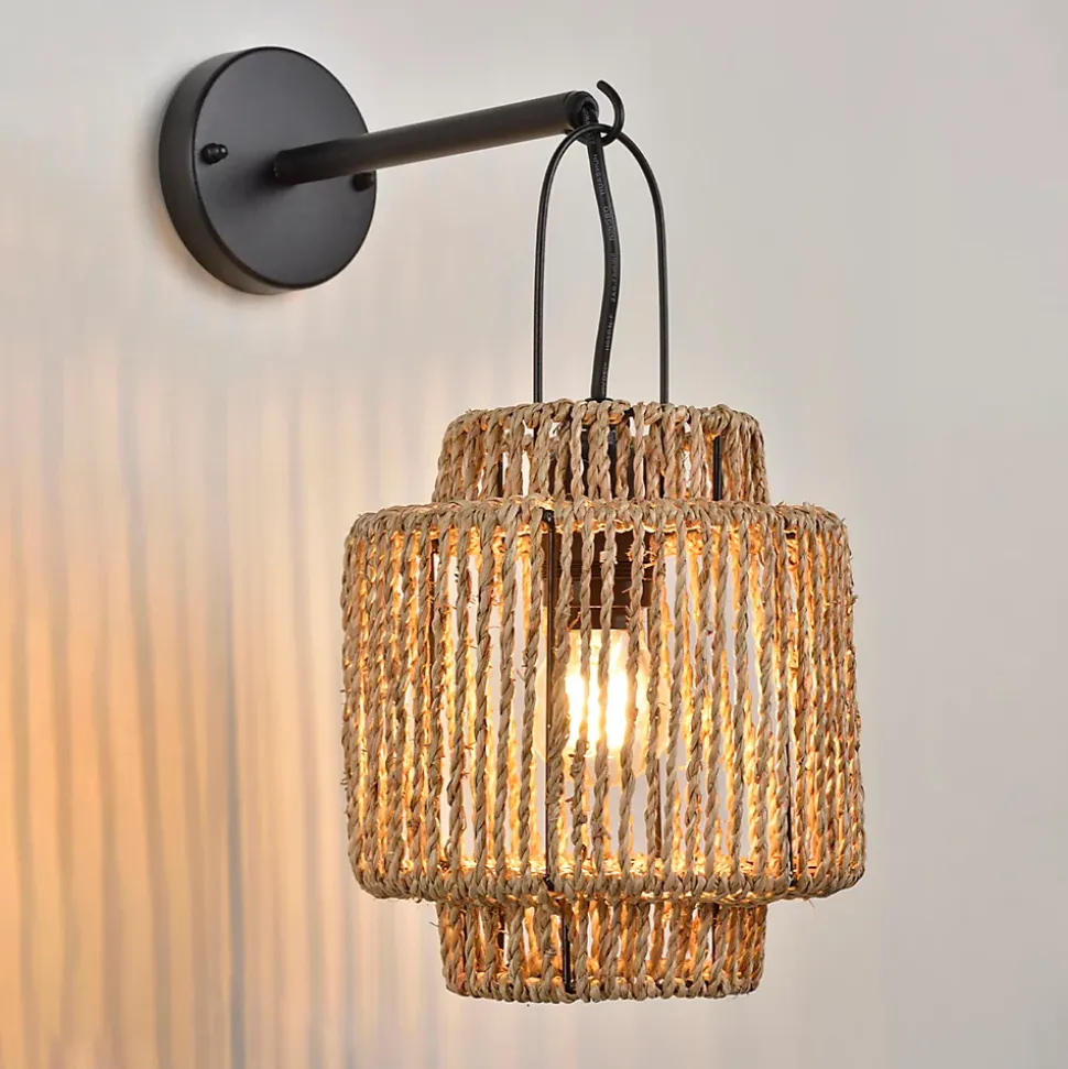 Applique métal et jacinthe naturel Cancun E27 15W IP44 L.20 x l.30 x H.23 x P.30 cm