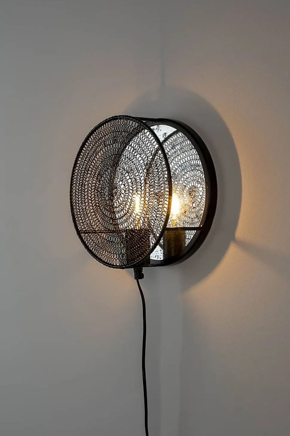 Applique métal LEA – Boite à designApplique murale avec miroir au look très originalCette applique pourra s’intégrer dans des intérieurs de type design, vintage/rétro ou bien bohèmeCadre en fer recouvert de poudre époxyDimensions: (Long.xLarg.xH) 25.5×25.5x11Existe en deux couleurs: Or et noir