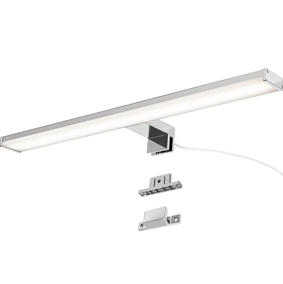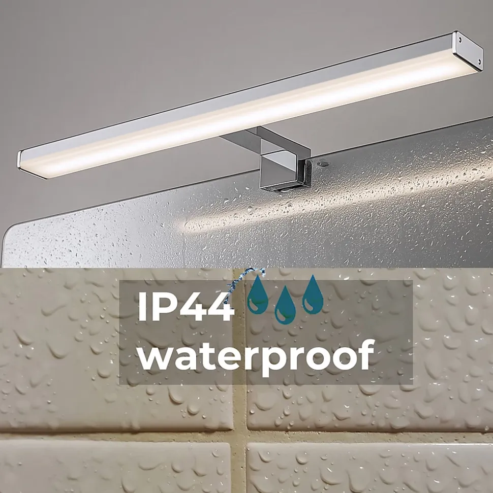 Applique LED pour miroir de salle de bain – 50 cm, 12W, 1260 lm, IP44, installation polyvalente (miroir, meuble ou mur) Cet applique LED de 50 cm de large offre un éclairage puissant, uniforme et fonctionnel, idéal pour des tâches comme le maquillage, le rasage ou le lavage. Son design moderne et minimaliste en fait une solution parfaite pour les salles de bain contemporaines. Grâce à sa polyvalence d’installation, il peut être installé sur le miroir, sur des meubles ou directement sur le mur. Fabriqué en aluminium et en polycarbonate de haute qualité, il est résistant à l’humidité, aux éclaboussures d’eau, à la poussière et à la saleté, grâce à sa protection IP44, ce qui le rend particulièrement adapté aux environnements de salle de bain. Caractéristiques principales : Dimensions : 50 cm de largeur (500 x 112 x 44 mm) Puissance : 12W – 1260 lumens Température de couleur : 4000K (blanc neutre) CRI > 80 : Haute fidélité des couleurs Protection IP44 : Résistant à l’humidité et à la poussière Angle d’ouverture : 120° Installation rapide sans transformateur supplémentaire Matériaux : Corps : Aluminium Diffuseur : Polycarbonate / Plastique acrylique résistant Options d’installation (3 en 1) : Sur le miroir : via une fente intégrée à la base. Sur le meuble : fixation par vis avec support horizontal. Au mur : avec support mural inclus. Avantages du produit : Taille idéale de 50 cm pour une couverture optimale sur le miroir. Éclairage LED efficace avec puce SMD2835. Design moderne et discret qui s’adapte à toutes les salles de bain. Lumière claire et uniforme, idéale pour une utilisation quotidienne. Installation facile avec tous les accessoires inclus. Parfait pour être placé au-dessus du miroir et profiter d’un éclairage intense, clair et à faible consommation.