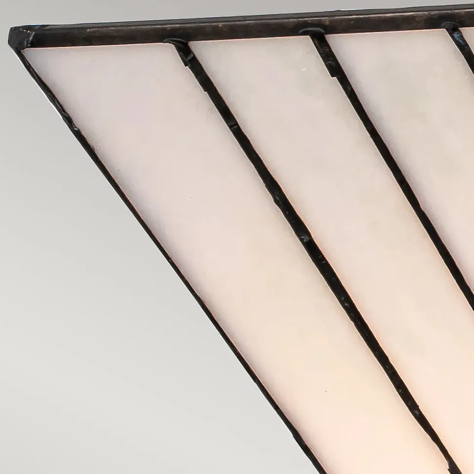 Apportant une simplicité moderne à l’éclairage en verre art déco de style Tiffany, la famille Alderley se caractérise par des lignes droites précises et une palette de couleurs raffinée. Lorsqu’elles sont allumées, les panneaux bleus prennent une magnifique teinte turquoise et les panneaux texturés étincellent simplement. Les composants métalliques de ces produits sont finis avec un riche bronze vieilli et présentent un style classique art déco.