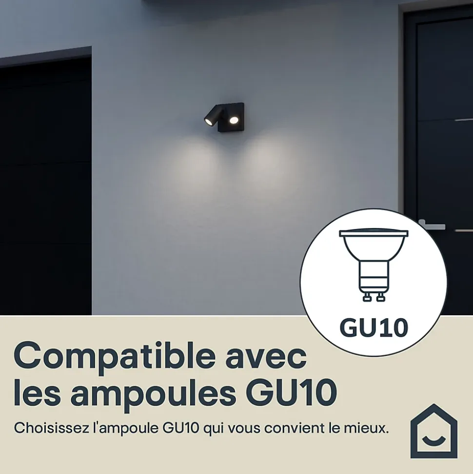 Applique murale 2 têtes Tongoa GU10 25W IP44 Goodhome gris