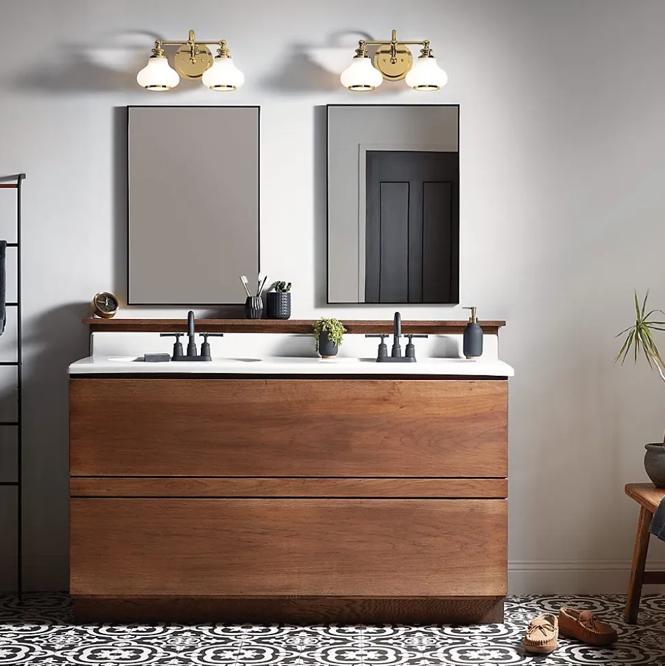 La silhouette traditionnelle d’Ainsley charme avec des détails distinctifs comme les coupes tournées rétro modernes. Les abat-jours en verre opale sont rehaussés d’un élégant anneau en laiton bruni pour la touche finale.