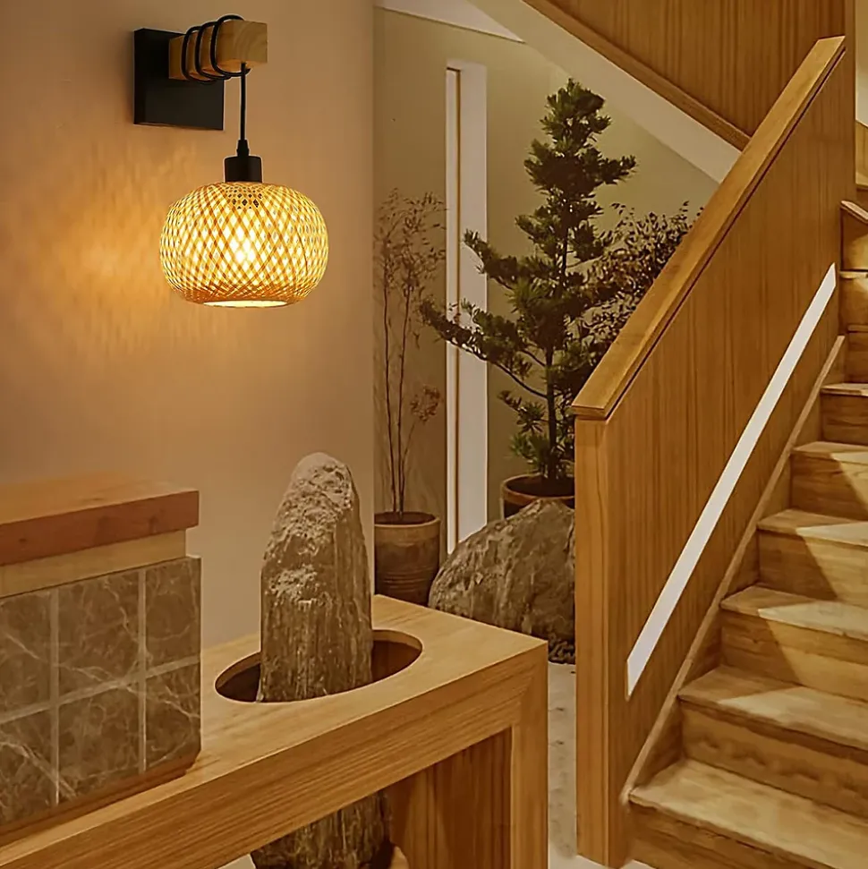 Lapplique murale HANA fusionne design et qualité avec une base en métal noir un support en bois et un abat-jour artisanal en osier. Son treillis original crée des jeux de lumières et dombres générant des ambiances chaleureuses. La combinaison de fibres naturelles de bois et de métal noir confère une polyvalence pour sadapter à différents styles de décoration. Lapplique murale HANA fusionne design et qualité avec une base en métal noir un support en bois et un abat-jour artisanal en osier. Son treillis original crée des jeux de lumières et dombres générant des ambiances chaleureuses. La combinaison de fibres naturelles de bois et de métal noir confère une polyvalence pour sadapter à différents styles de décoration.