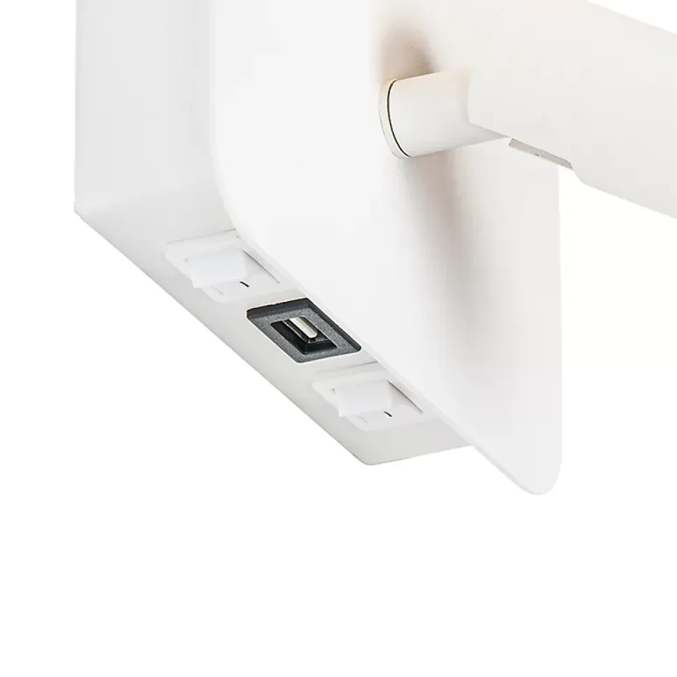 Vous recherchez une liseuse pratique ? Avec Robin, vous aurez toujours assez de lumière pour lire un livre ! Robin est une applique murale moderne en acier, de couleur blanche. Elle a une profondeur de 13,5 cm, une hauteur de 20 cm et une longueur de 13,5 cm. La plaque de montage mesure 13,5 cm de long. L’applique est équipée d’un éclairage LED (non remplaçable). Sa durée de vie moyenne est de 15 000 heures et sa température de couleur de 3 000 K (lumière blanche chaude). Elle fournit 300 lumens de lumière, ce qui est largement suffisant pour lire un livre ! Elle n’est pas dimmable. La lampe est également dotée d’un port USB pour recharger votre téléphone ou votre liseuse électronique, par exemple. Super pratique !