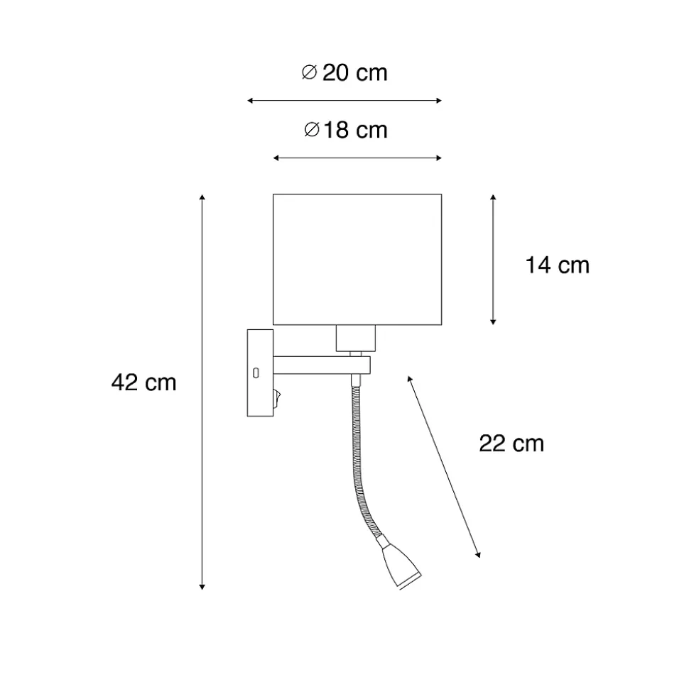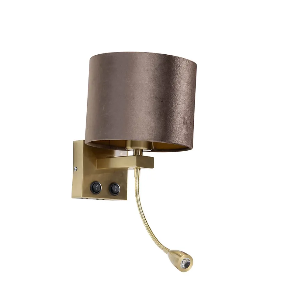 Style et fonctionnalité réunis ! L’applique murale Brescia allie luxe et commodité. Sa finition bronze chaleureuse et son abat-jour en velours marron confèrent à votre intérieur un look chic, tandis que l’intérieur doré procure une réflexion atmosphérique de la lumière. Cette lampe est dotée d’une liseuse intégrée et flexible, idéale pour une installation près du lit ou dans un coin lecture confortable. Grâce à son double interrupteur, vous pouvez utiliser les deux sources lumineuses séparément afin de créer toujours l’ambiance parfaite. Élégance et fonctionnalité se conjuguent dans l’applique murale Brescia, un incontournable pour votre intérieur !
