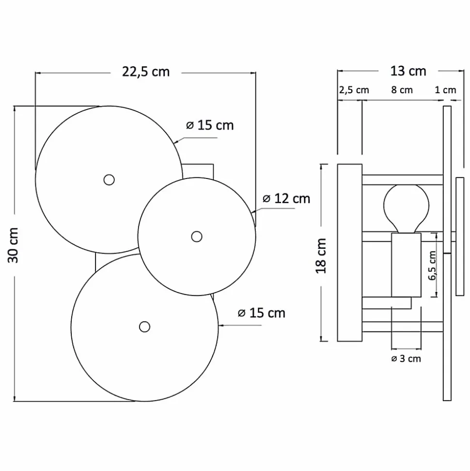 Emilia est une applique murale dorée, composée d’un socle à la finition brillante et de trois disques en verre. Les disques, ornés de fines stries, diffusent de superbes reflets muraux lorsque l’applique est allumée. Fonctionnant avec une ampoule E14 (non fournie), cette pièce raffinée s’intègre parfaitement dans un intérieur moderne. Pour une cohésion parfaite, Emilia peut être combinée avec le plafonnier de la même gamme.) Assemblage simple requis (