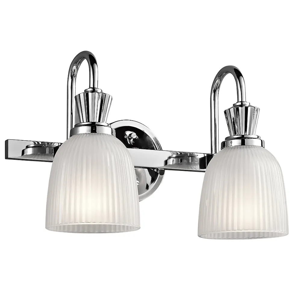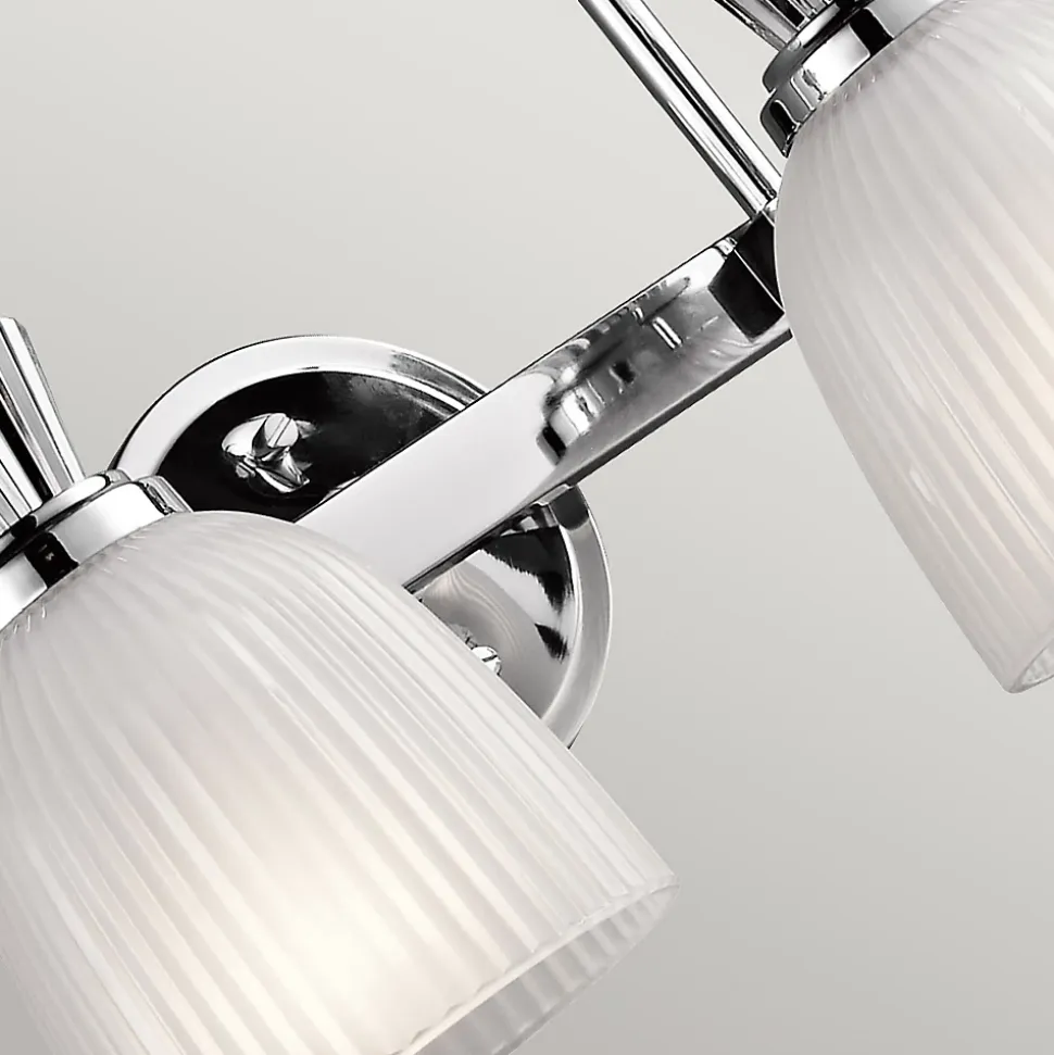 La collection classique Cora utilise des lampes LED et présente des courbes gracieuses et des lignes épurées qui ajoutent juste ce qu’il faut à son style modernisé. Le verre strié transparent en forme de cloche avec une gravure intérieure flotte magnifiquement sur les supports en chrome poli.