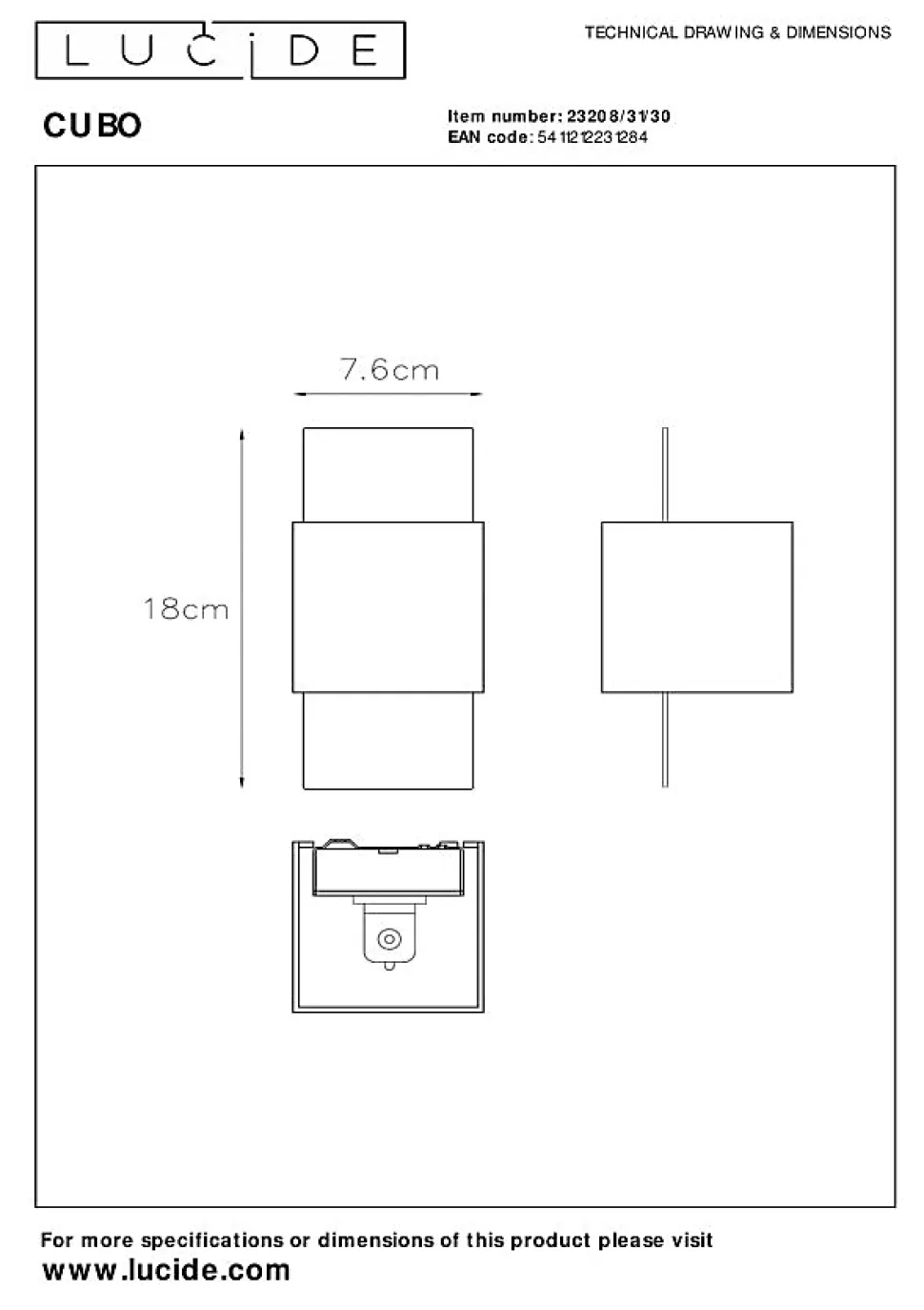 La lampe murale Cubo de Lucide est un luminaire en aluminium aux finitions irréprochables. Cette applique murale très utilisée par les architectes sera la plus belle, droite sur un beau mur en stuc ou sur un mur de maçonnerie grossièrement fini. Cette lampe murale diffuse une magnifique lumière en forme de sablier. Avec une plaque arrière de dimensions 8,5cm x 7,6cm, la lampe Cubo est facile à installer sur une boite de dérivation. Ce luminaire élégant sublimera n’importe quelle pièce. La lampe Cubo est pourvue d’une douille G9 haute tension et est livrée avec une ampoule. d’une prise haute volts et est livré avec une source de lumière. Si nécessaire, vous pourrez remplacer l’ampoule traditionnelle halogène G9 par une ampoule LED G9 dimmable à économie d’énergie ou non. LED ou halogène traditionnelle, dans chaque cas, l’intensité de la lampe Cubo est facilement réglable (avec une base dans la structure ou un variateur – non inclus). La lampe murale Cubo est disponible en plusieurs couleursCaractéristiques uniques:• Utilisable avec une source lumineuse LED• Facile à connecter à un variateur (non fourni)• Fabriqué en aluminiumPrincipales caractéristiques du produit:• Consommation énergétique: 1x40W / 230V / A intensité variable (Ampoule non incluse)• Dimensions: Lon.7,6 x Larg.7,6 x Haut.18 cm• 2 Ans garantie sur le luminaire / source de lumière appropriée est EAN: 5411212491916Pourquoi choisir l’éclairage Lucide?Lucide incarne un design innovant, un savoir-faire artisanal et une fiabilité exemplaire. En tant qu’entreprise familiale belge avec plus de trois décennies d’expertise, nous concevons des éclairages de haute qualité qui enrichissent et transforment chaque espace, tant intérieur qu’extérieur. Notre collection polyvalente comprend des luminaires durables et des sources lumineuses économes en énergie, soigneusement conçus par nos propres experts et fabriqués selon les normes CE les p…