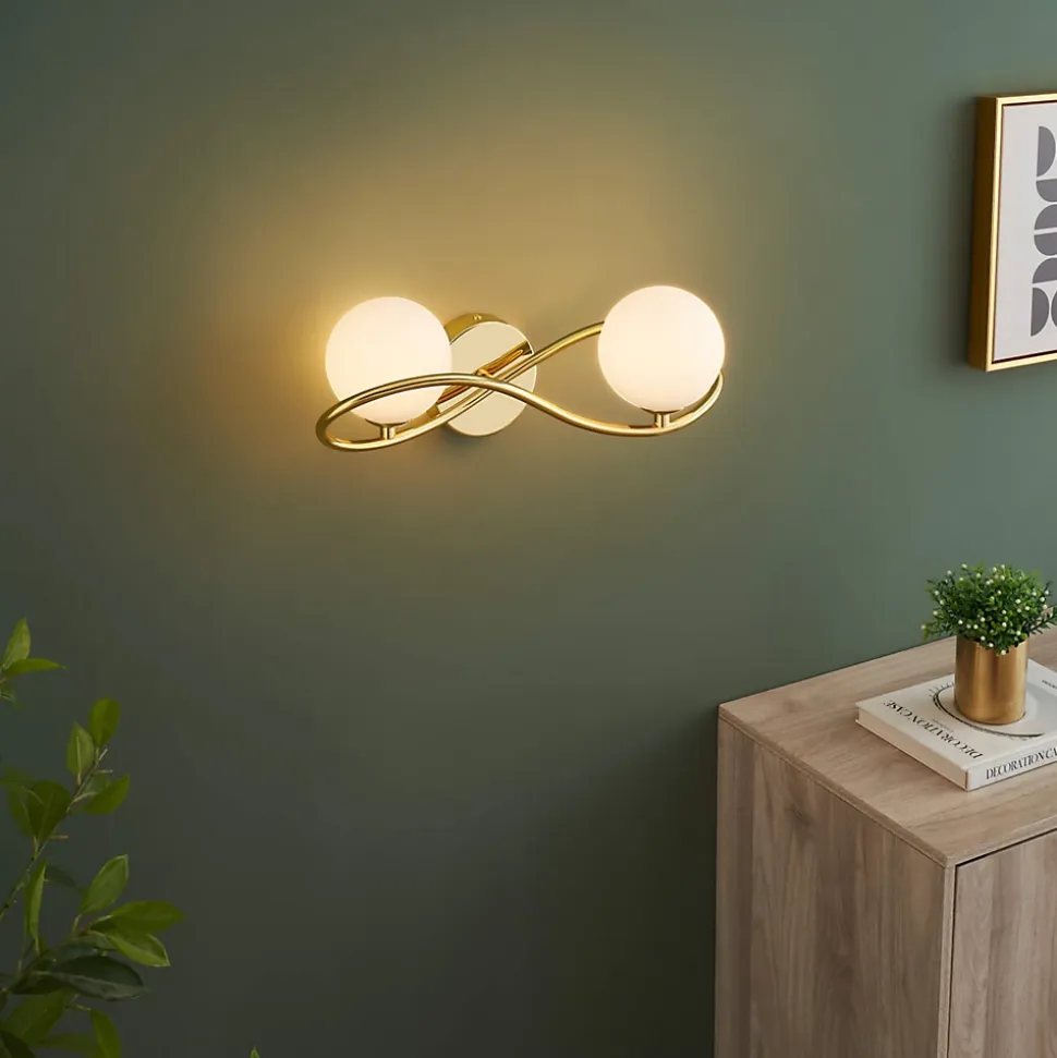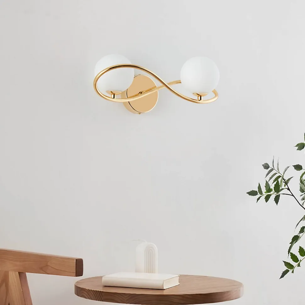 L’applique murale Novale est conçue en métal et en verre, avec une structure en forme de vague infinie reposant sur un socle rond élégant. De chaque côté, deux petites sphères en verre blanc couvrent les emplacements pour des ampoules à culot G9 (non fournies). Son design intemporel permet à cette applique de s’adapter aussi bien aux intérieurs modernes qu’aux plus classiques. Elle combine habilement une esthétique moderne avec une touche artistique. Les boules en verre blanc diffusent une lumière douce et chaleureuse, créant une atmosphère accueillante dans les salons, chambres ou couloirs.) Assemblage simple requis (