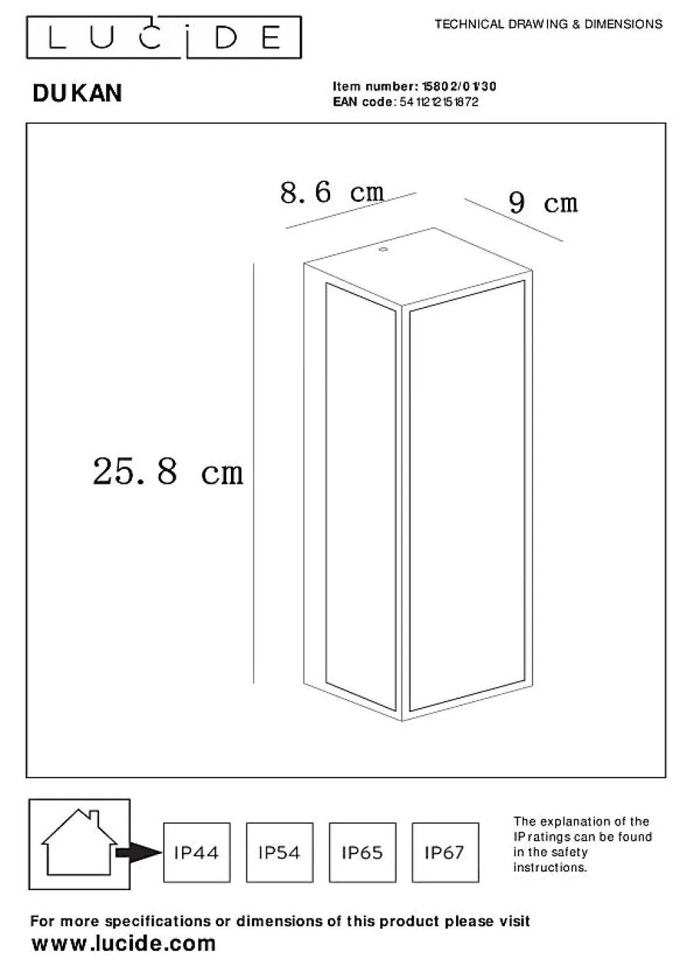 Dukan pourrait facilement trouver sa place dans un musée : une source lumineuse contenue dans un élégant cadre noir. L’applique murale convient à une utilisation extérieure fiable et à long terme. Le design, le verre de haute qualité et le cadre rectangulaire en acier mesurent 25,8 x 8,6 cm. Avec son look élégant, l’applique murale s’intègre parfaitement à une façade moderne. Grâce à son design intemporel, cet éclairage extérieur se sentira également à l’aise dans une maison au style classique. Combinez-la avec une ampoule LED appropriée et vous pourrez immédiatement créer une belle ambiance pour accueillir vos visiteurs. Grâce à la fine plaque de montage, vous pourrez facilement fixer l’applique murale à la façade. Dukan est également facile à connecter à un gradateur de lumière.Caractéristiques uniques:• Utilisable avec une source lumineuse LED• Facile à connecter à un variateur (non fourni)• Fabriqué en verrePrincipales caractéristiques du produit:• Dessiné spécialement pour une utilisation fiable et de longue durée à l’extérieur (IP65)• Consommation énergétique: 1x15W / 230V / A intensité variable (Ampoule non incluse)• Dimensions: Lon.9 x Larg.8,6 x Haut.25,8 cm• 2 Ans garantie sur le luminaire / source de lumière appropriée est EAN: 5411212491152Pourquoi choisir l’éclairage Lucide?Lucide incarne un design innovant, un savoir-faire artisanal et une fiabilité exemplaire. En tant qu’entreprise familiale belge avec plus de trois décennies d’expertise, nous concevons des éclairages de haute qualité qui enrichissent et transforment chaque espace, tant intérieur qu’extérieur. Notre collection polyvalente comprend des luminaires durables et des sources lumineuses économes en énergie, soigneusement conçus par nos propres experts et fabriqués selon les normes CE les plus strictes. Grâce à notre large gamme, nous vous proposons toujours une solution d’éclairage adaptée, quel que soit le st…
