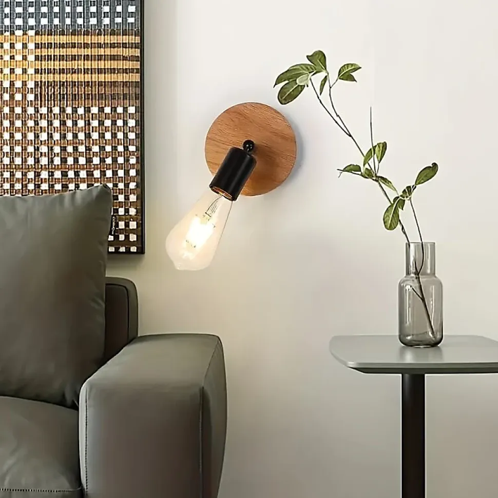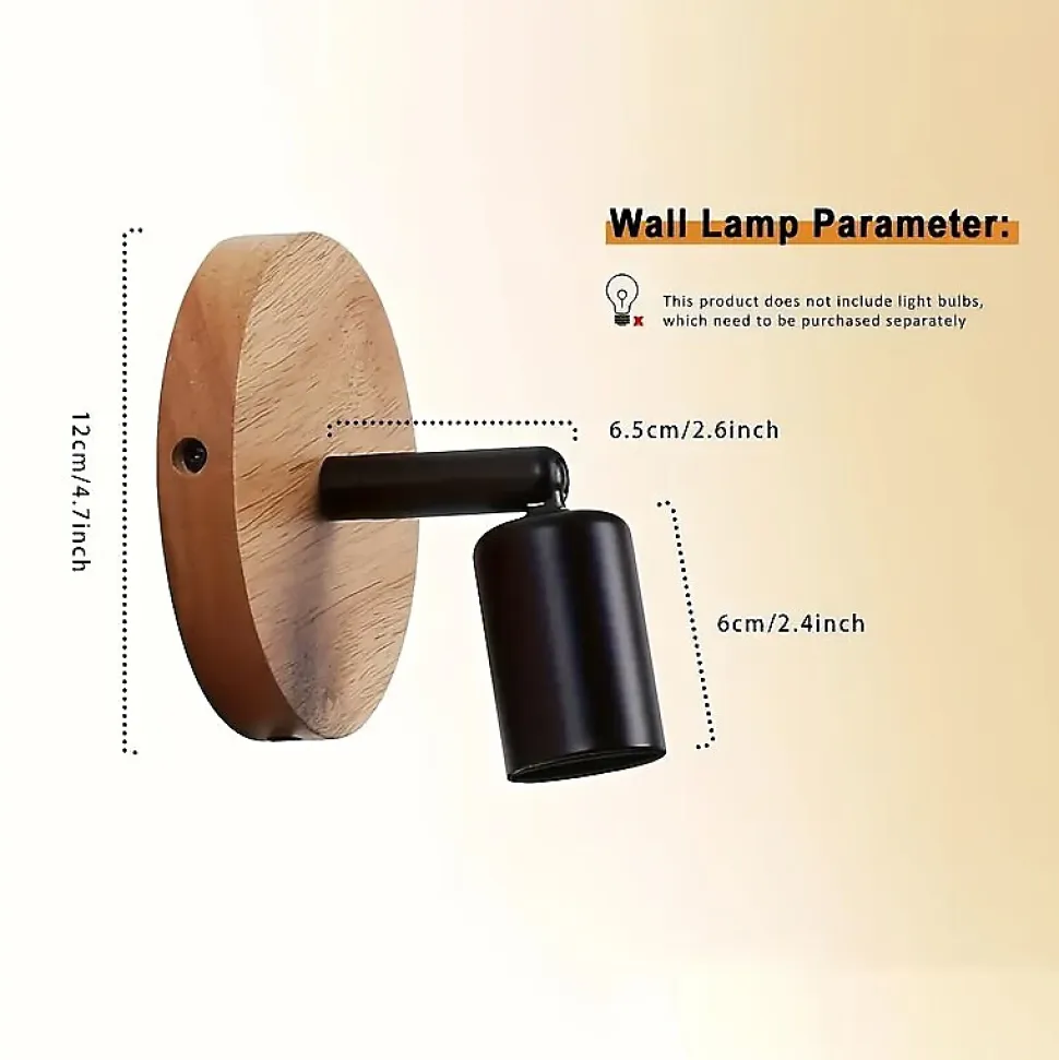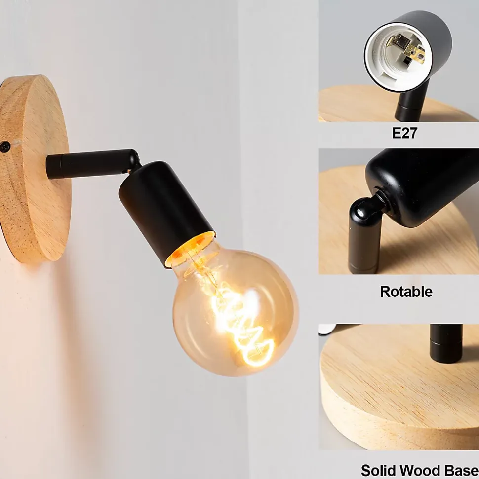 Design moderne et naturel : l’alliance d’un socle en bois massif et d’une structure en métal blanc ou noir s’intègre parfaitement aux intérieurs contemporains, nordiques ou minimalistes.Tête orientable : permet d’orienter la lumière selon vos besoins, idéale comme lampe de lecture, éclairage d’accentuation ou lumière d’ambiance.Douille E27 standard : compatible avec les ampoules LED, décoratives ou de type Edison (ampoule non fournie), offrant une totale liberté dans le choix de l’intensité et de la température de couleur.Éclairage fonctionnel et décoratif : diffuse une lumière ciblée sans compromettre l’élégance du design, même éteint.Installation murale facile : raccordement direct à la prise électrique, sans câble apparent, pour une finition impeccable.Dimensions compactes :Socle en bois : Ø 12 cmBras : 6,5 cmDouille : 6 cmUtilisation polyvalente : idéale pour les chambres, les salons, les couloirs, les bureaux, les têtes de lit ou les coins lecture.