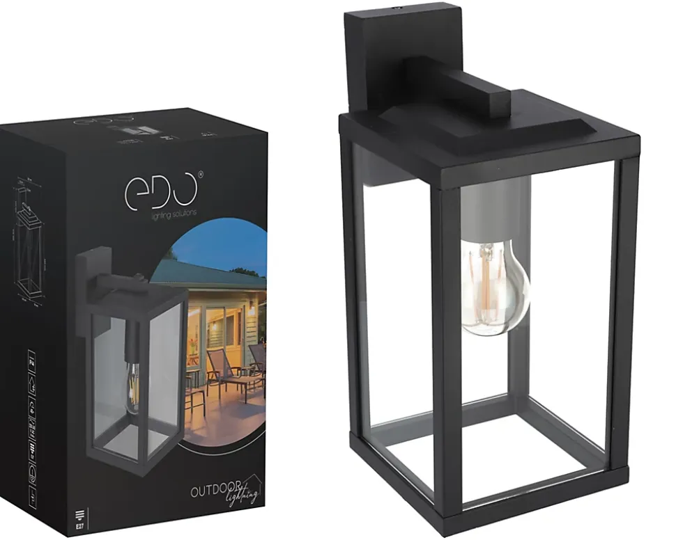 Applique murale de jardin GAIA S BLACK E27 noir IP44 EDO777370 EDO SolutionsL’applique murale d’extérieur GAIA est un luminaire moderne destiné à être installé à l’extérieur des bâtiments. Sa structure en aluminium résistant lui confère durabilité et résistance aux intempéries, tandis que son abat-jour en verre transparent diffuse une lumière agréable.Il a été conçu dans un souci de simplicité et de fonctionnalité. Son installation murale est facile grâce à son système de montage en saillie et à son bloc à vis.Dimensions [mm] : ✔️hauteur totale : 305 mm✔️largeur totale : 145 mm✔️profondeur totale : 200 mm✔️boîtier : 120 x 80 x 30 mmCARACTÉRISTIQUES TECHNIQUES :✔️Lieu de montage : mur✔️Type de raccordement : vis✔️Couleur : noir✔️Type de finition : sablé✔️Matériau du boîtier : aluminium✔️Matériau du cache : verre✔️Réglable : non✔️Cache : transparent✔️Type de douille : E27✔️Nombre de douilles : 1✔️Source lumineuse incluse : non✔️Puissance max [W] : 40W✔️Tension nominale [V] : 220-240 V AC✔️Fréquence nominale [Hz] : 50-60 Hz✔️IP : IP44✔️Classe de protection : I