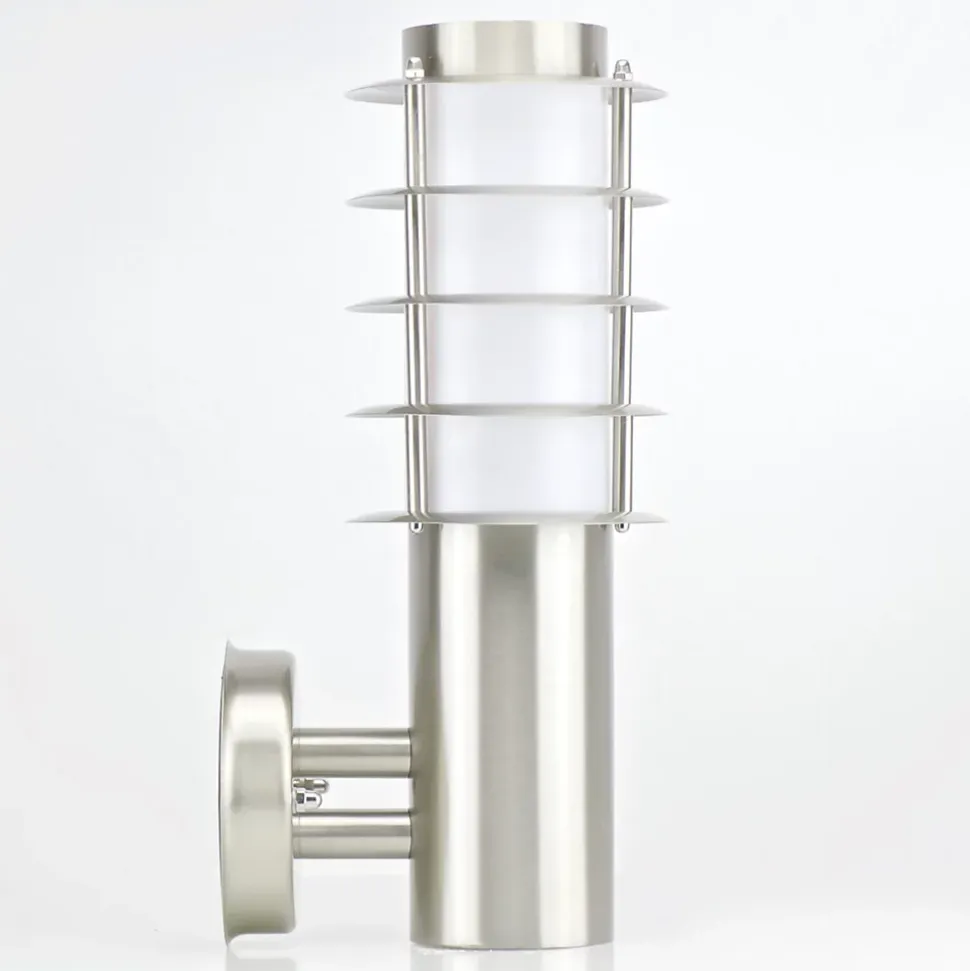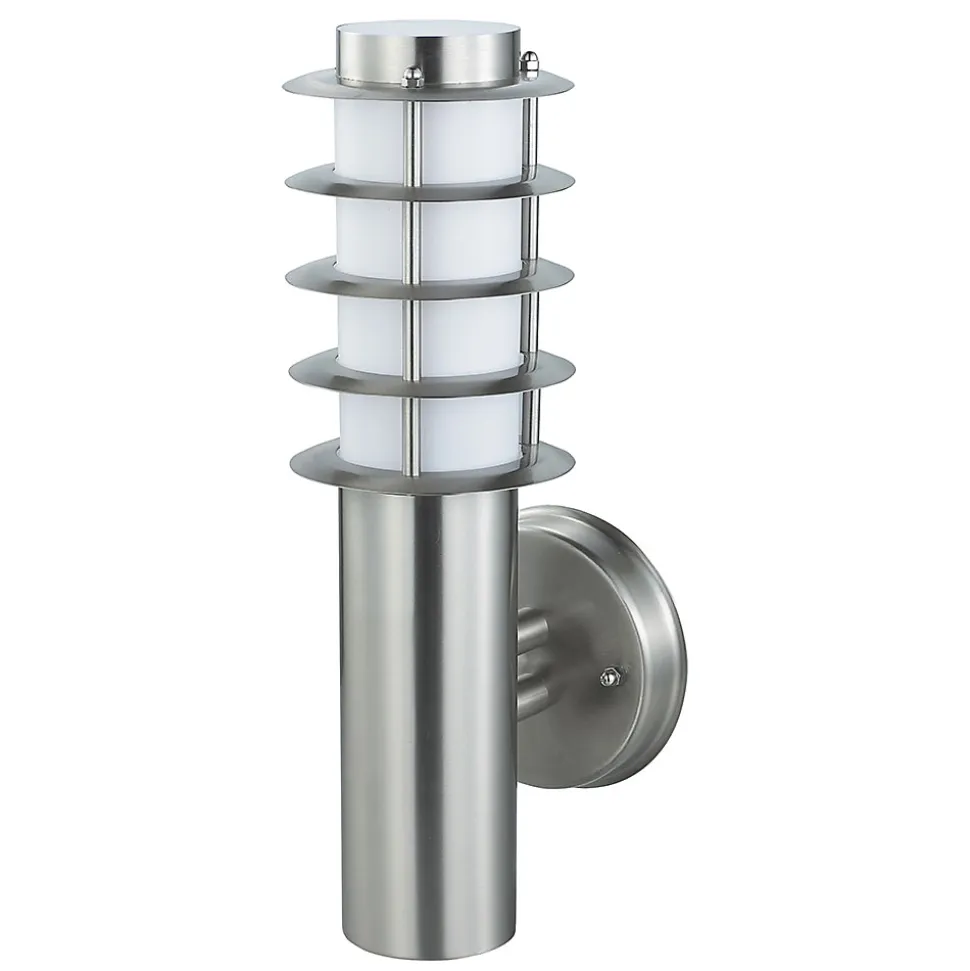 L’applique Ladin-2 inox E27 60W met en valeur les façades grâce à son design contemporain. De plus elle sécurise et facilite l’accès à votre domicile. Son corps est en acier inoxydable et acier galvanisé et son diffuseur en plastique rigide (PC) . Le diffuseur opale offre un éclairage à 360°. Muni d’une douille E27, l’applique Ladin-2 inox E27 60W peut accueillir tous types d’ampoules LED E27 (puissance MAX 60W). La puissance Max indiquée sur les luminaires correspond à la puissance maximum consommée par l’ampoule et non pas la puissance restituée par l’ampoule. Vous pouvez par exemple installer une ampoule LED 8W équivalente à 60W. Les 8W correspondent à la puissance consommée et les 60W à la puissance restituée. Vous ferez donc plus de 80% d’économie d’énergie avec cette ampoule LED 8W tout ayant la même intensité qu’une ampoule incandescente 60W. Cependant vous pouvez également installer une ampoule LED plus puissante de 10, 12 ou 15W équivalente à 100, 120 ou 160W. Tant que la valeur de puissance consommée de l’ampoule ne dépasse pas les 60W. L’indice de protection IP44 assure que le produit est : Protégé contre l’intrusion de corps solides supérieurs à 1 mm. Protégé contre les petites projections d’eau venant de toutes directions. Les produits dotés d’un indice de protection IP44 sont destinés à une installation intérieur ou extérieur protégée, sous abri. La gamme d’éclairage extérieur LADIN se décline en applique, borne, potelet et flambeau. Produit conforme à la norme CE, à la directive RoHS et DEEE.