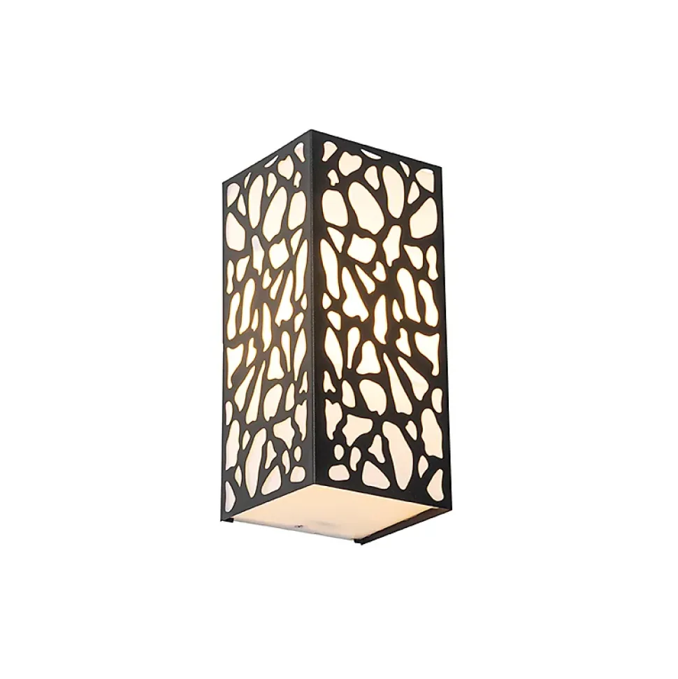 Cette applique murale extérieure saisissante crée un bel effet lumineux grâce à son motif tacheté. Fabriquée en plastique avec de l’aluminium, elle est dotée d’une finition noire. Sa profondeur est de 11,6 cm, sa hauteur de 26 cm et sa longueur de 12,4 cm. Vous pouvez compléter l’applique murale avec une ampoule E27 (20W maximum). N’oubliez pas de la commander séparément. L’applique murale est compatible avec un variateur d’intensité externe, qui n’est toutefois pas inclus. Avec un indice de protection IP44, elle est résistante aux éclaboussures, ce qui la rend idéale pour les zones abritées comme à côté de la porte d’entrée ou sous un auvent. Offrez un bel éclairage à votre maison avec l’applique murale Nicole.