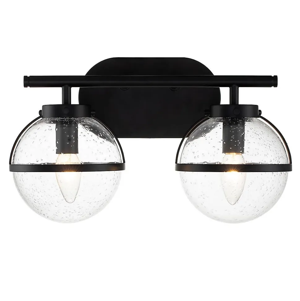 L’applique murale Hollis à 2 lumières rappelle les lampes inspirées de l’Art déco des années 1920. Elle est finie en noir et fabriquée en acier avec du verre clair grainé. Classée IP44.