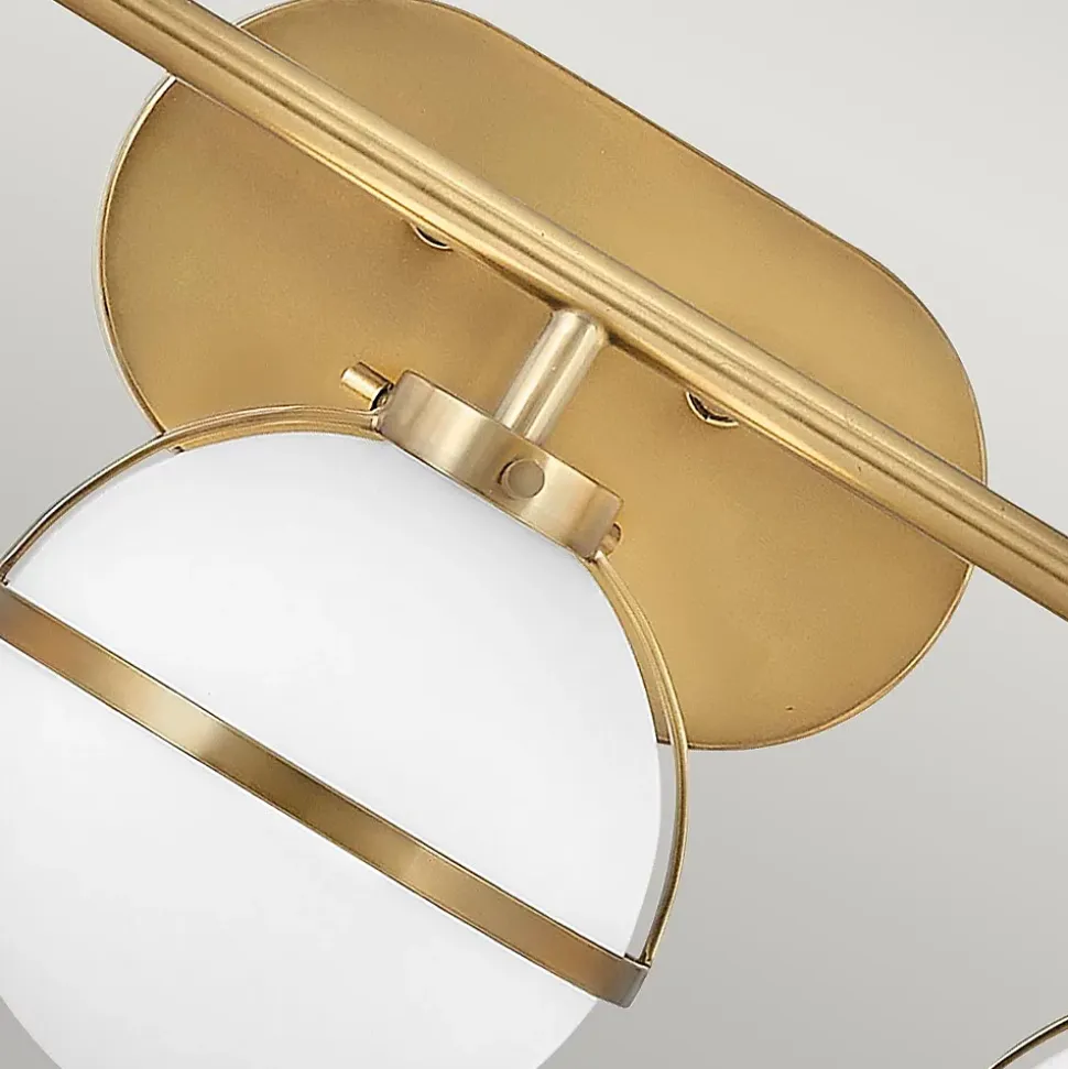 L’applique murale Hollis à 3 lumières rappelle les lampes inspirées de l’Art déco des années 1920. Elle est finie en laiton Heritage et fabriquée en acier avec un verre opale. Classée IP44.