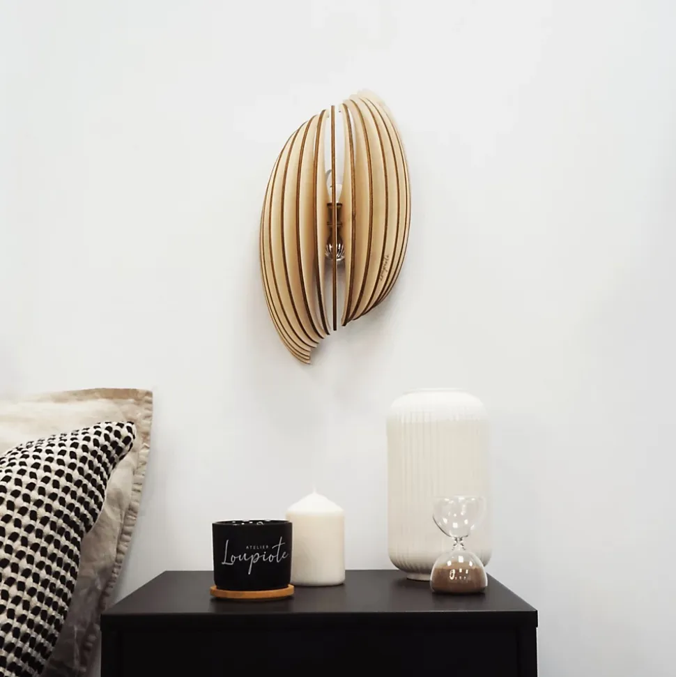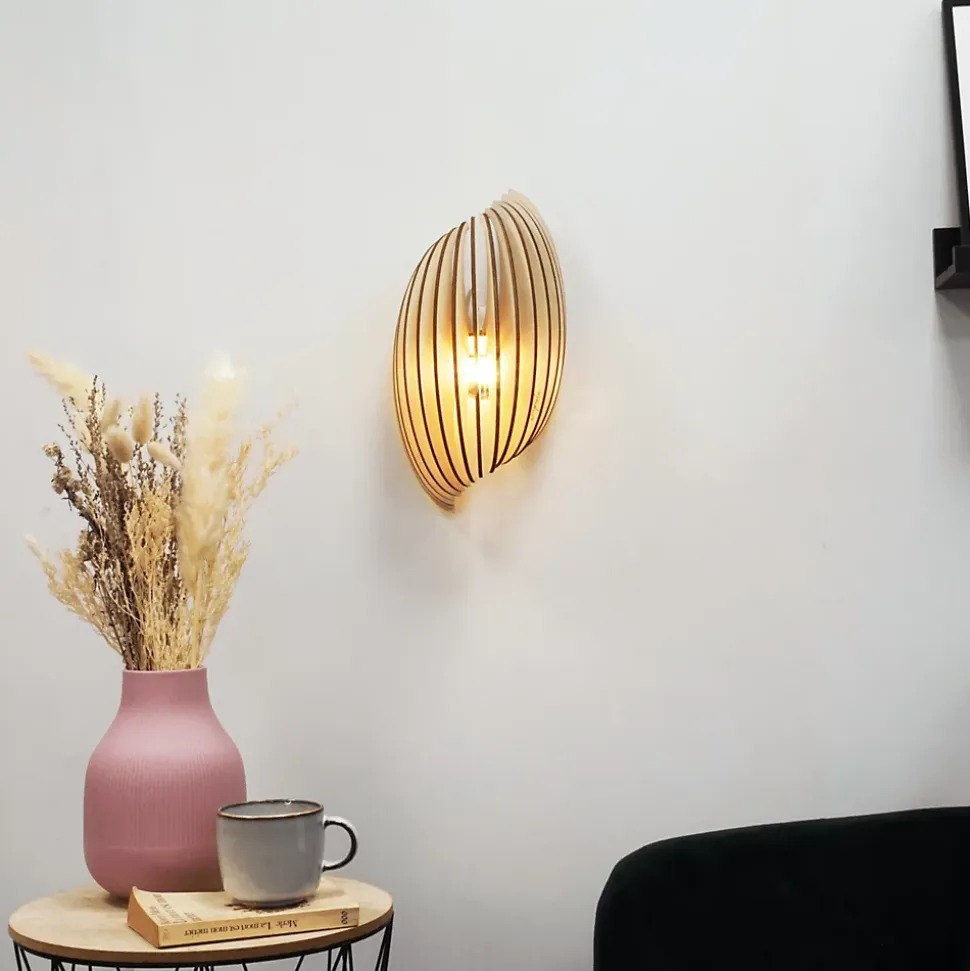 Découvrez l’applique murale en bois Assia, idéale pour éclairer escaliers, entrées et couloirs. Son design compact et élégant s’adapte parfaitement aux espaces étroits, apportant une lumière douce et chaleureuse qui transforme vos passages en véritables atouts déco. Luminaire mural en bois Assia, inspiré par la nature L’applique Assia puise son inspiration dans la forme protectrice d’une graine. Ses lamelles de bois courbées diffusent un éclairage tamisé et apaisant, créant un cocon lumineux unique. Grâce à ses interstices, elle projette de magnifiques jeux d’ombres sur les murs et plafonds, pour une ambiance chaleureuse et naturelle. Assia : l’alliance parfaite du bois naturel et du design contemporain Conçue en bois naturel, l’applique murale Assia allie esthétisme et fonctionnalité. Elle est parfaite pour ceux qui recherchent un luminaire mural design, naturel et compact, idéal pour valoriser escaliers, entrées et couloirs.