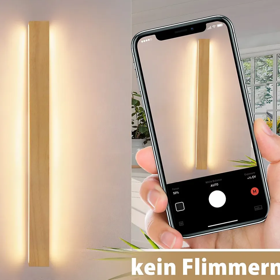 Personnalisez votre ambiance. Cette élégante applique murale en bois est disponible en plusieurs tailles. Choisissez la longueur parfaite, de 32cm à 100cm, pour s’adapter idéalement à votre mur et à vos besoins d’éclairage.Découvrez nos variantes :Taille : 32cm (Réf : 0692090294942)Taille : 52cm (Réf : 0081904452676)Taille : 100cm (Réf : 0692090295086)DESIGN : Cette applique murale en bois est conçue pour diffuser une lumière vers le haut et vers le bas. La lumière est émise indirectement par le haut et le bas de l’applique, créant une atmosphère agréable. Blanc chaud 3000 K : Cette applique diffuse une lumière chaude avec une température de couleur de 3000 K, sans scintillement et avec un indice RA supérieur à 85, garantissant un excellent rendu des couleurs. La lampe mesure 100 cm et a une puissance de 36 watts et 5000 lumens. Veuillez noter que l’intensité lumineuse n’est pas réglable.Utilisation : Grâce à son design fin, cette applique murale à éclairage vers le haut et vers le bas convient à de nombreuses applications. Elle est particulièrement adaptée aux chambres, salons, couloirs, entrées, escaliers, halls d’entrée et autres espaces similaires. Grâce à son design polyvalent, elle s’adapte à différents styles d’intérieur et d’ameublement et s’intègre harmonieusement à son environnement.MATÉRIAUX ET INSTALLATION : L’applique murale est fabriquée en bois. L’installation est très simple : il suffit de visser la tige de fixation au mur. Vous pouvez ensuite fixer l’applique murale au rail de fixation à l’aide de vis, une opération rapide et facile. Tout le matériel nécessaire à l’installation est inclus pour une installation aussi simple que possible.Décoration lumineuse idéale : cette applique murale d’intérieur est idéale pour un salon, un couloir, une chambre, une salle à manger, etc. Le veinage du bois attrayant confère à cette lampe un style d’intérieur unique. Son design se démarque sur le mur et constitue une décoration élégante.
