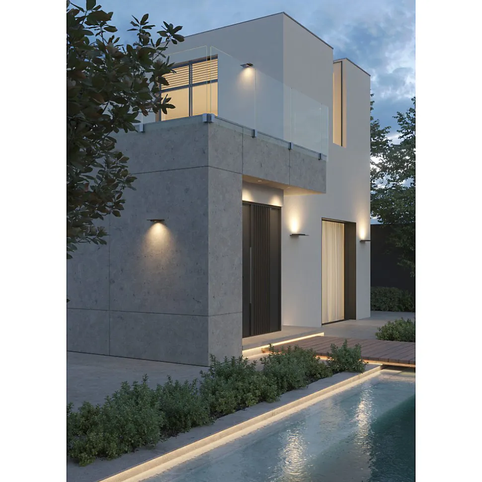 La technologie CCT Switch intégrée permet de choisir la température de couleur entre 2 700 K, 3 200 K et 4 000 K, adaptant ainsi la tonalité lumineuse à chaque moment de la journée.Fabriquée en aluminium, Pla XL offre un indice de protection IP65 et une résistance mécanique IK06, ce qui la rend idéale pour une utilisation en extérieur, même dans des environnements exposés à la poussière ou à l’humidité.Une applique murale polyvalente et décorative, idéale pour créer des ambiances intimes et relaxantes dans les espaces privés comme professionnels