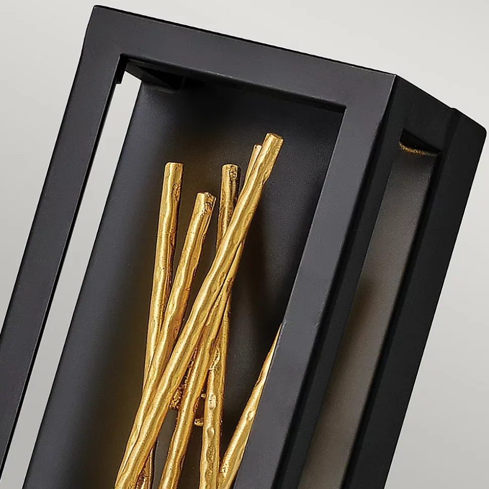 Le design époustouflant de Styx fusionne un glamour riche avec un style moderne pour une silhouette dynamique et captivante avec des éléments inattendus. Un cadre ouvert à LED intégré est entièrement dimmable, composé d’angles nets dans une finition noire chic. Le cadre illumine des branches métalliques texturées en or doré, mêlant des éléments organiques et contemporains.