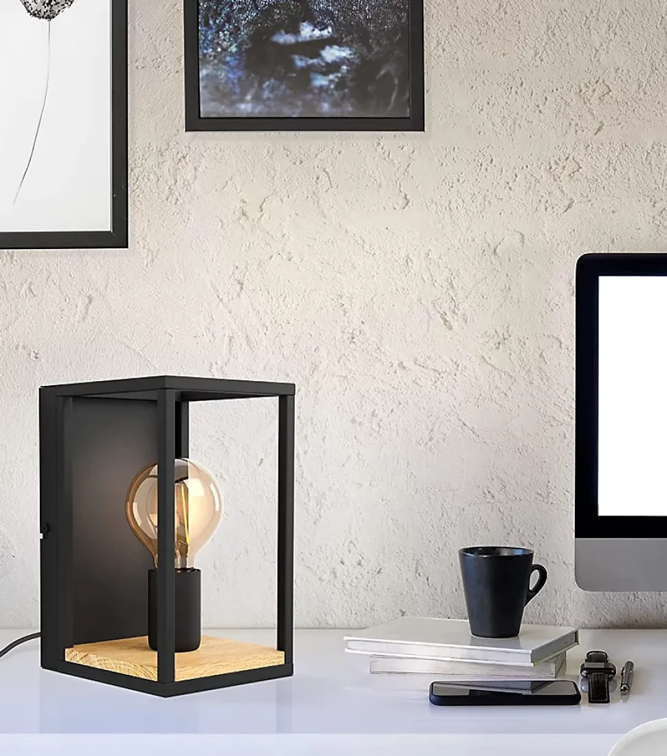 - L’applique murale LIBERTAD se compose d’un cadre en métal noir cubique associé à un plateau en bois d’hévéa décoratif.