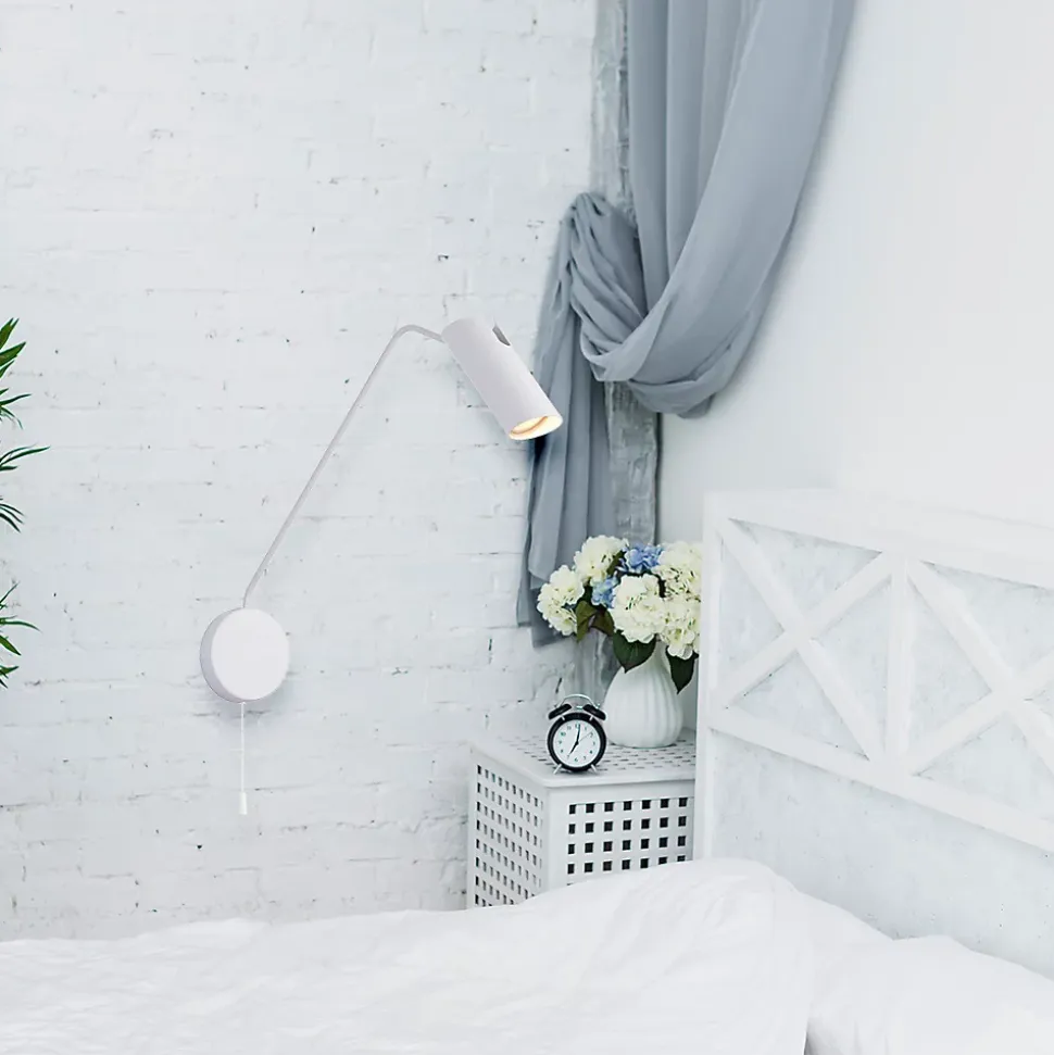 Applique murale avec bras L’applique murale en métal blanc avec bras de la collection Futuro est une solution d’éclairage élégante et minimaliste qui s’intègre parfaitement aux intérieurs modernes. Fabriquée en métal blanc, elle arbore un design à la fois simple et raffiné. L’abat-jour tubulaire est équipé d’une douille pour ampoule GU10. Son design moderne et minimaliste la rend idéale pour les espaces résidentiels et commerciaux. La couleur blanche polyvalente et la forme épurée de cette applique lui confèrent une allure élégante qui saura satisfaire les amateurs de design contemporain les plus exigeants. Autre atout de l’applique Futuro : son angle d’éclairage réglable et son long bras, muni d’un abat-jour à son extrémité, permettent un ajustement précis de la lumière selon les besoins. Enfin, elle est équipée d’un interrupteur à tirette situé à sa base. Pour ceux qui privilégient l’harmonie stylistique dans toute leur maison, la collection Futuro propose également d’autres options d’éclairage, comme des suspensions et des appliques murales à bras articulé. Applique murale Futuro en métal blanc : détails Type de lampe : Applique murale blanche de la collection Futuro. Dimensions : Hauteur : environ 38,5 cm, largeur : environ 41 cm, hauteur de l’abat-jour : environ 9 cm. Matériaux et couleurs : La lampe est en métal blanc. Source lumineuse : L’applique murale est équipée d’une douille pour une ampoule GU10.