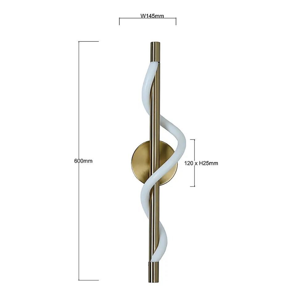 L’applique murale dorée de Meleca est une solution d’éclairage moderne, qui se distingue par son élégance et sa finition haut de gamme. Sa structure et son socle rond sont en métal doré, lui conférant une allure luxueuse. L’abat-jour, en forme de tube spiralé, est réalisé en acrylique flexible. À l’intérieur, une source lumineuse LED intégrée à température de couleur réglable (CCT) vous permet d’adapter l’éclairage à vos envies. Cette applique Meleca est idéale comme élément décoratif dans un salon, une chambre ou un couloir, et offre également un éclairage d’appoint fonctionnel. Sa forme moderne et sa finition dorée s’harmonisent avec les styles classique moderne, glamour ou contemporain. La collection Meleca comprend également suspensions , qui vous permettent de créer des compositions lumineuses cohérentes et efficaces dans différentes parties de l’intérieur. Applique murale Meleca en détail Type de lampe : Applique murale de la collection Meleca. Dimensions : L’applique mesure 60 cm de hauteur et 14,5 cm de largeur. Le diamètre de la base est de 12 cm et sa largeur de 2,5 cm. Matériaux et couleurs : La lampe est fabriquée en métal doré et en acrylique blanc. Source lumineuse : L’applique murale est équipée d’une source lumineuse LED CCT intégrée. Source lumineuse LED CCT intégrée Les appliques murales en métal de la collection Meleca sont équipées d’une source lumineuse LED CCT intégrée. Cela permet à l’utilisateur de choisir la couleur de lumière qu’il préfère. Avant l’installation, vous pouvez sélectionner une lumière froide, chaude ou neutre grâce à un interrupteur pratique situé sur le socle de l’applique murale.