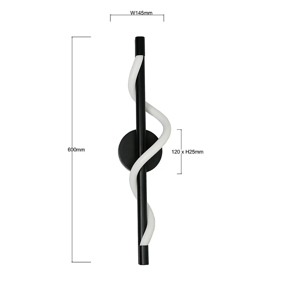 L’applique murale noire de Meleca est une solution d’éclairage moderne, qui se distingue par son élégance et sa qualité de fabrication. Sa structure et son socle rond sont en métal noir, un coloris polyvalent. L’abat-jour, en forme de tube spiralé, est réalisé en acrylique souple. À l’intérieur, une source lumineuse LED intégrée à température de couleur réglable (CCT) vous permet d’adapter l’éclairage à vos besoins. Cette applique Meleca est idéale comme élément décoratif dans un salon, une chambre ou un couloir, et offre également un éclairage d’appoint fonctionnel. Sa forme moderne, associée à une finition dorée, s’intègre harmonieusement aux styles classique moderne, glamour ou contemporain. La collection Meleca comprend également suspensions , qui vous permettent de créer des compositions lumineuses cohérentes et efficaces dans différentes parties de l’intérieur. Applique murale Meleca en détail Type de lampe : Applique murale de la collection Meleca. Dimensions : L’applique mesure 60 cm de hauteur et 14,5 cm de largeur. Le diamètre de la base est de 12 cm et sa largeur de 2,5 cm. Matériaux et couleurs : La lampe est en métal noir et acrylique blanc. Source lumineuse : L’applique murale est équipée d’une source lumineuse LED CCT intégrée. Source lumineuse LED CCT intégrée Les appliques murales en métal de la collection Meleca sont équipées d’une source lumineuse LED CCT intégrée. Cela permet à l’utilisateur de choisir la couleur de lumière qu’il préfère. Avant l’installation, vous pouvez sélectionner une lumière froide, chaude ou neutre grâce à un interrupteur pratique situé sur le socle de l’applique murale.