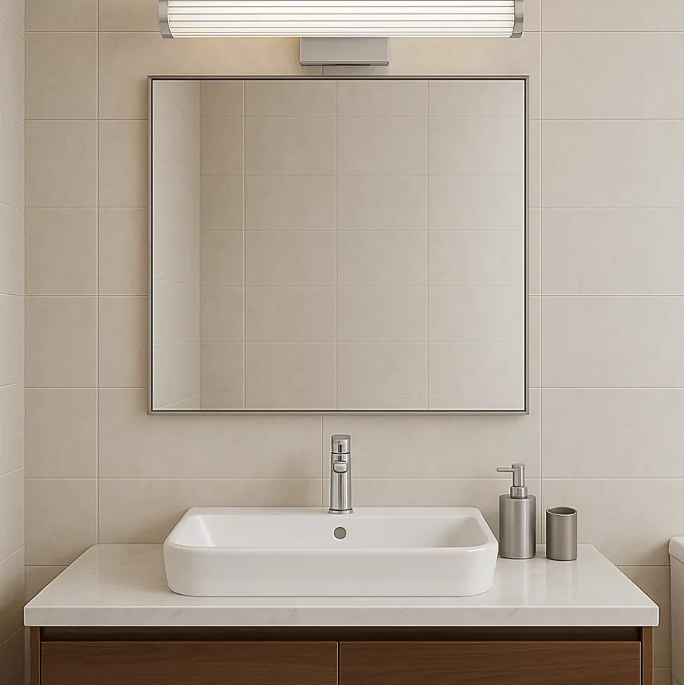 L’applique murale chromée Vena de 45 cm est une applique LED élégante et fonctionnelle qui allie raffinement et praticité. Fabriquée en métal et acrylique de haute qualité, avec des détails chromés, elle arbore un design intemporel qui s’intègre parfaitement aux intérieurs modernes. Dotée d’une source LED intégrée de 8 W avec température de couleur réglable (3000 K/4000 K/6000 K), elle vous permet d’ajuster l’intensité et la couleur de l’éclairage selon vos envies. Grâce à son indice de protection IP44, l’applique murale est résistante à l’humidité et idéale pour les salles de bains. Applique murale chromée Vena en détail Type de lampe : Applique murale LED moderne finition chromée. Dimensions : Longueur 45 cm, hauteur 12 cm, diamètre 6 cm – idéale pour une installation au-dessus d’un miroir. Couleurs : Chrome et acrylique laiteux – une élégance intemporelle. Pièces : Parfaite pour les salles de bains, les couloirs, les dressings et les intérieurs modernes. Type d’éclairage : LED 8 W, température de couleur 3000 K/4000 K/6000 K. Sécurité : Indice de protection IP44 – résistance à l’humidité et aux projections d’eau. Un ajout élégant à la salle de bain L’applique murale Vena de 45 cm chromée est parfaite pour éclairer un miroir ou comme applique murale d’appoint. Grâce au réglage de la température de couleur (CCT), elle assure un confort d’utilisation optimal et adapte l’éclairage à toutes les situations. La collection Vena est disponible en différentes tailles et couleurs – or et chrome – vous permettant d’harmoniser les lampes avec votre décoration intérieure.