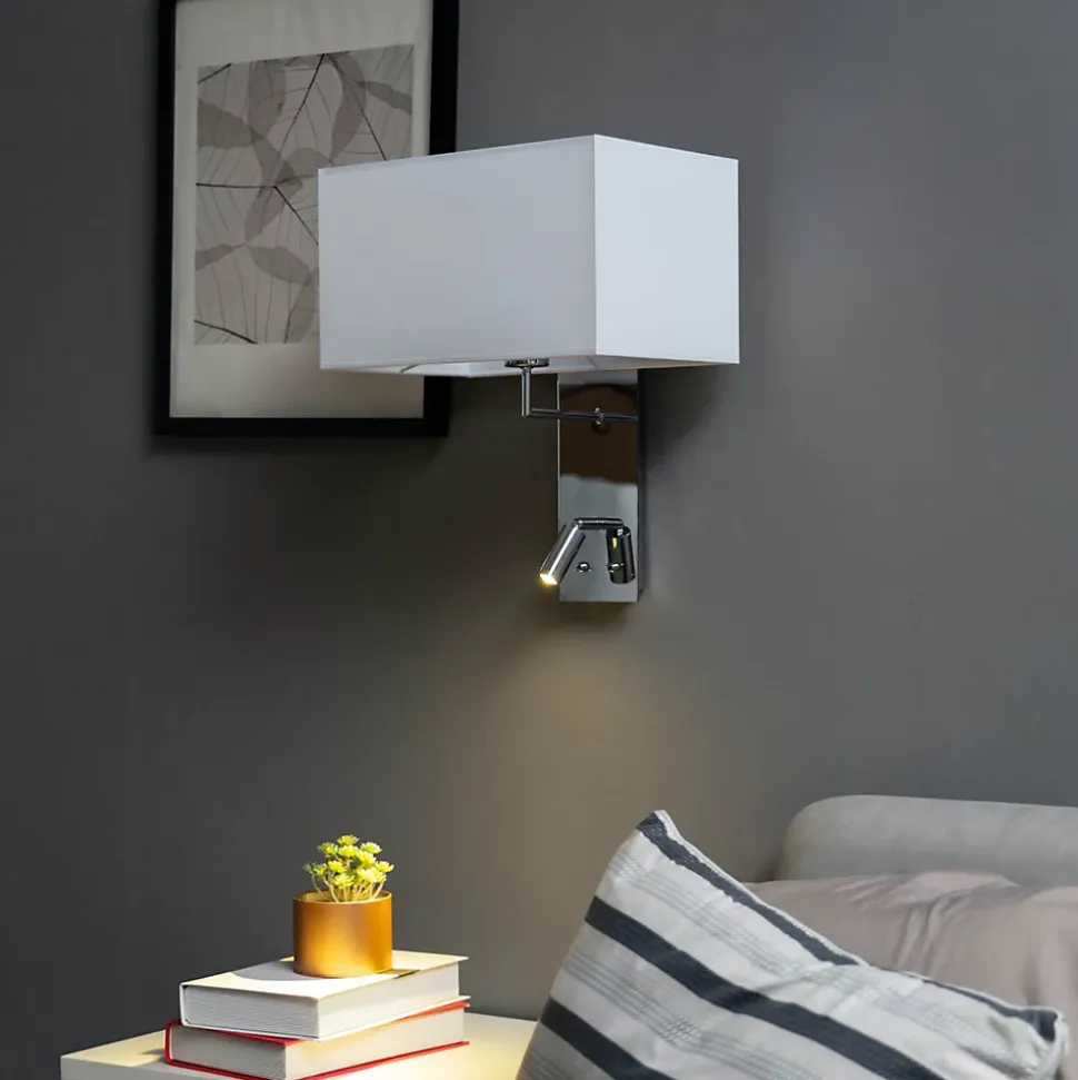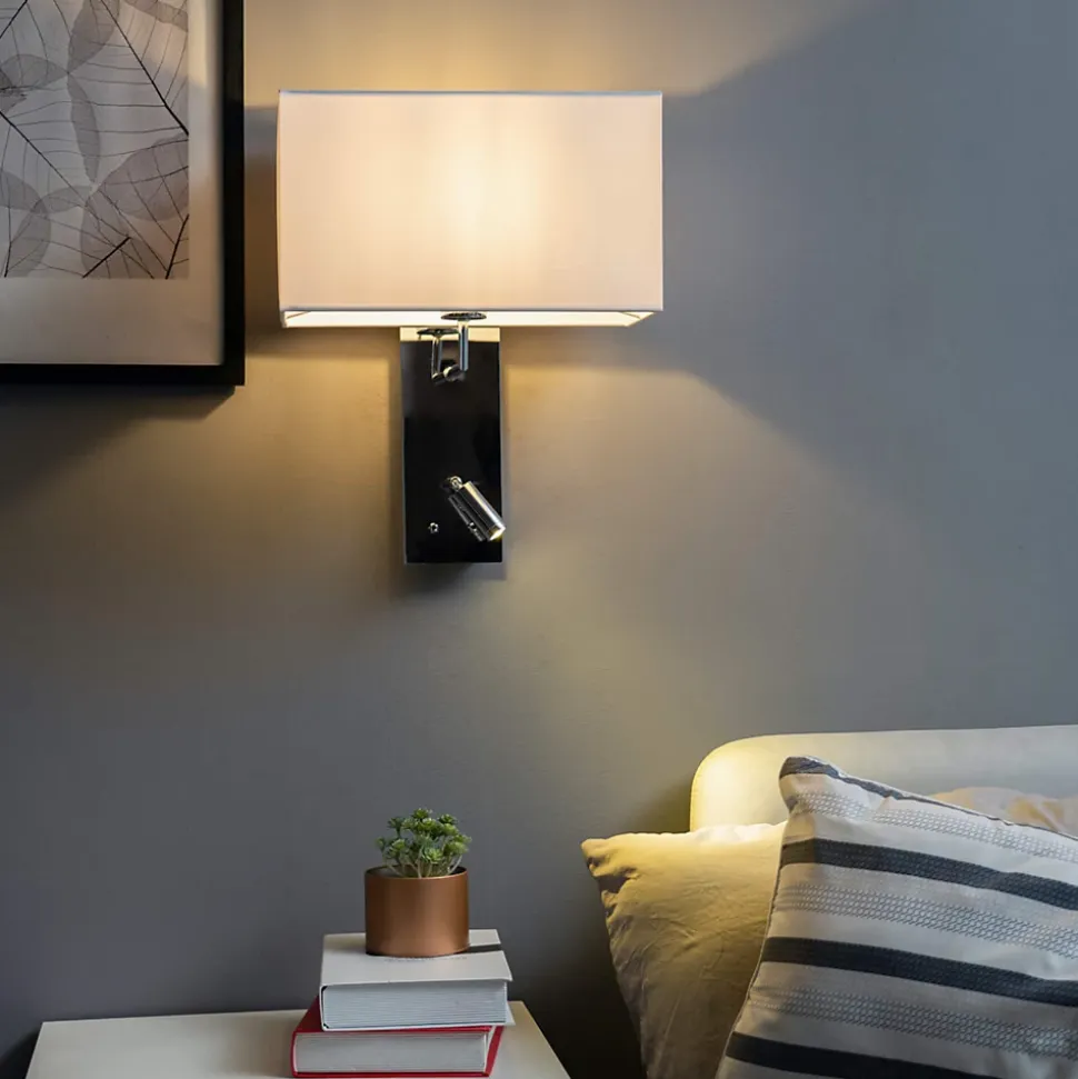 Alva est une superbe applique murale liseuse blanche qui allie esthétique et praticité. Avec son abat-jour rectangulaire blanc et son socle chromé, elle apporte une touche de modernité à votre espace. Son socle est doté d’une liseuse orientable et de deux interrupteurs intégrés, offrant un éclairage personnalisé selon vos besoins. Compatible avec une ampoule E27 et équipée d’une LED intégrée dans la liseuse, cette applique offre une grande flexibilité d’éclairage. Parfaite pour une chambre, elle s’intègre facilement dans tous les styles d’ambiance.) Assemblage simple requis (