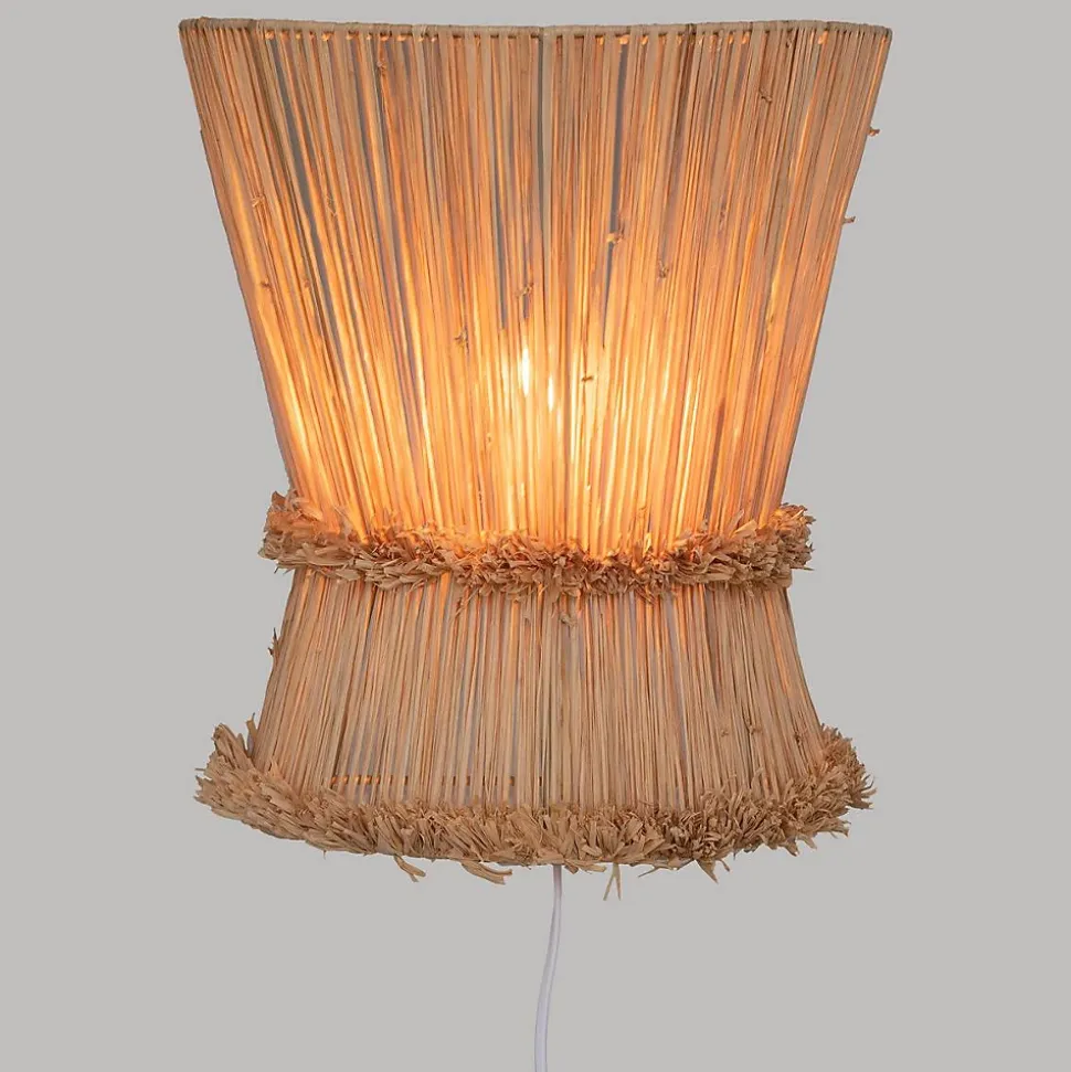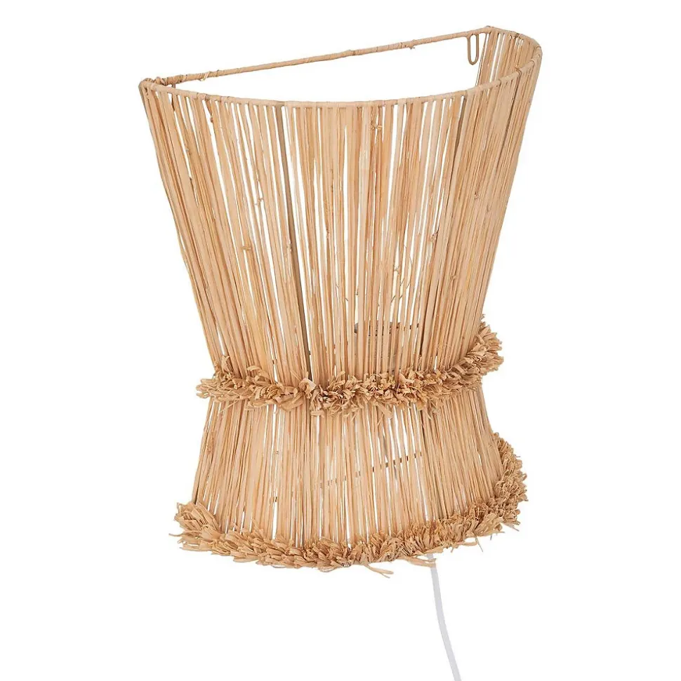 Avec son style artisanal, l’applique murale « Loa » Atmosphera déposera une note résolument ethnique chic dans votre intérieur.Des matières naturellesRéalisée à partir d’une structure en métal, l’applique « Loa » est entièrement habillée de raphia tressé et coupé à bord franc de manière à créer des franges. Elle diffusera une lumière tamisée à travers les tiges de raphia.Une déco de caractèreVous pourrez coordonner ce luminaire avec des matières comme le rotin et le bois afin de composer un univers empreint d’exotisme. Jouez avec des tiges naturelles séchées pour former un ensemble harmonieux.Pourquoi ne pas suspendre votre applique murale « Loa » près d’une console Atmosphera en bois de manguier ?Le petit plus décoComposez une ambiance propice à l’évasion en doublant cette applique et en choisissant des ampoules d’un blanc chaud.