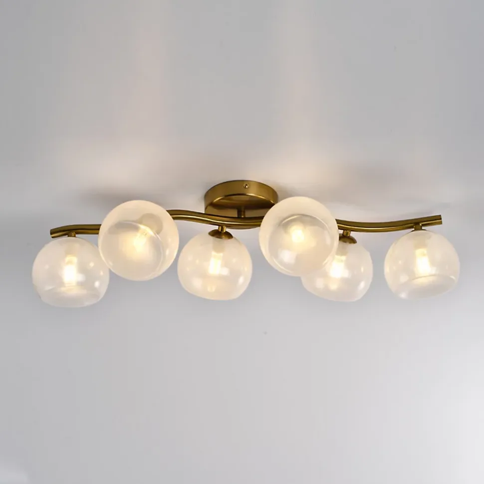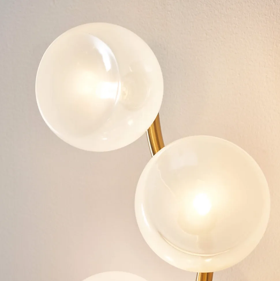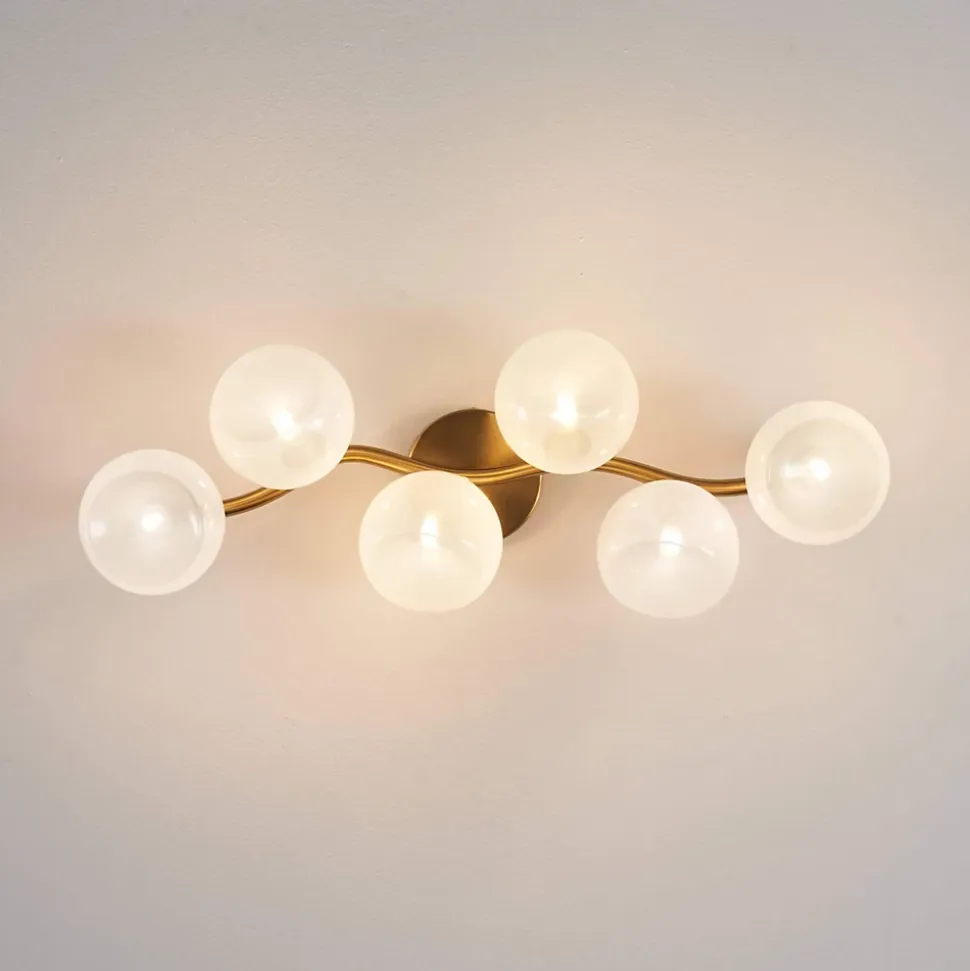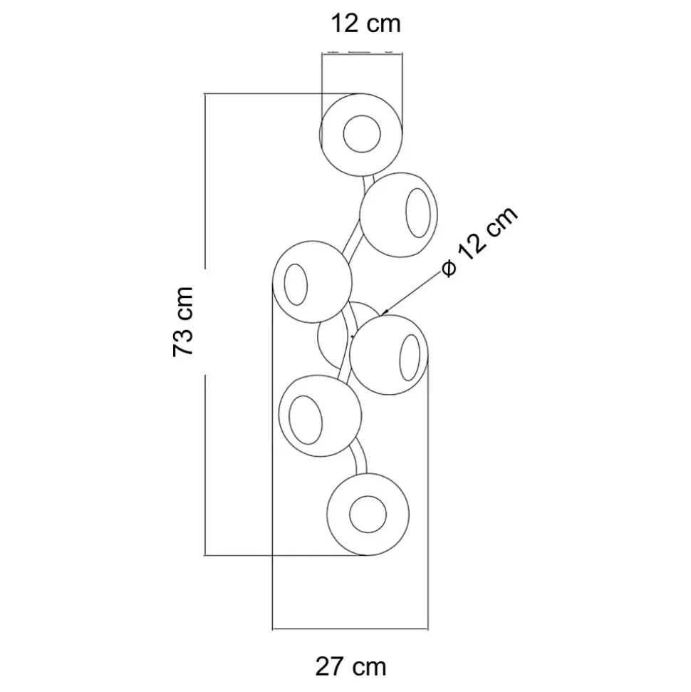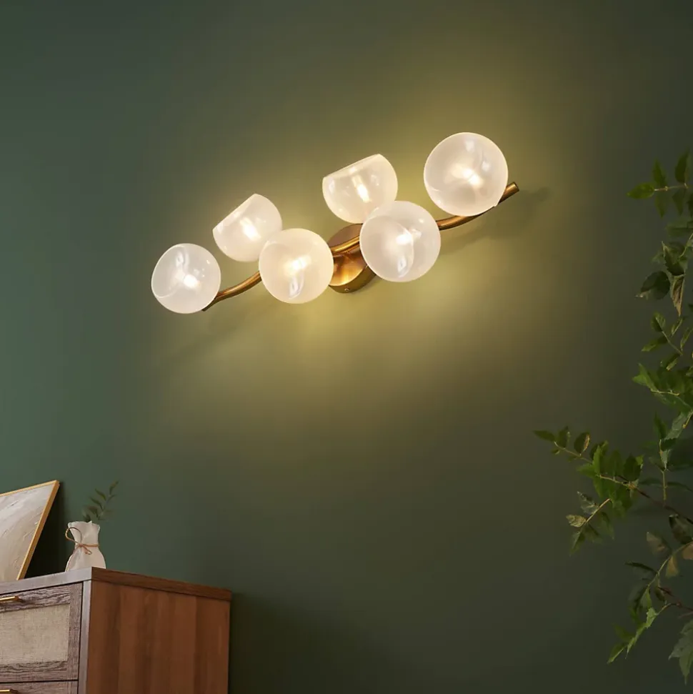 L’applique murale Isalina séduit par son design symétrique et raffiné. Dotée de six globes en verre montés sur une structure dorée, elle diffuse une lumière harmonieuse, parfaite pour sublimer les grands espaces. Elle fonctionne avec six ampoules G9 (non incluses), offrant un éclairage doux et élégant.) Assemblage simple requis (