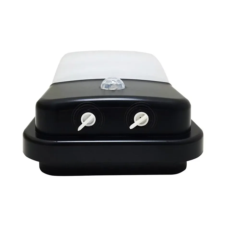Applique murale noire et équipée d’un détecteur de mouvement. Elle possède un indice de protection IP65 parfait pour une utilisation en extérieur tels que dans des jardins, des entrées, des cours etc. La détection de mouvement se fait jusqu’à 5 mètres environ et vous permet de maîtriser votre consommation en électricité, pour un allumage seulement lorsque vous avez besoin d’éclairage. Cette applique LED extérieure émet une lumière parfaitement distribuée et douce avec une luminosité exceptionnelle qui atteint 2050 lumens. Sa couleur noire apporte une touche de modernité et une touche de décoration proche de la déco industrielle très tendance. L’applique murale noire extérieure IP65 20W vous fait également économiser sur les coûts de maintenance grâce à sa durée de vie de près de 20 000 heures. Les réglages suivants sont possibles : – Intensité lumineuse de la détection crépusculaire. – Minuterie (30 secondes à 3 minutes) pour l’allumage. Craquez des maintenant pour un éclairage mural efficace, économique et offrant une grande sécurité !