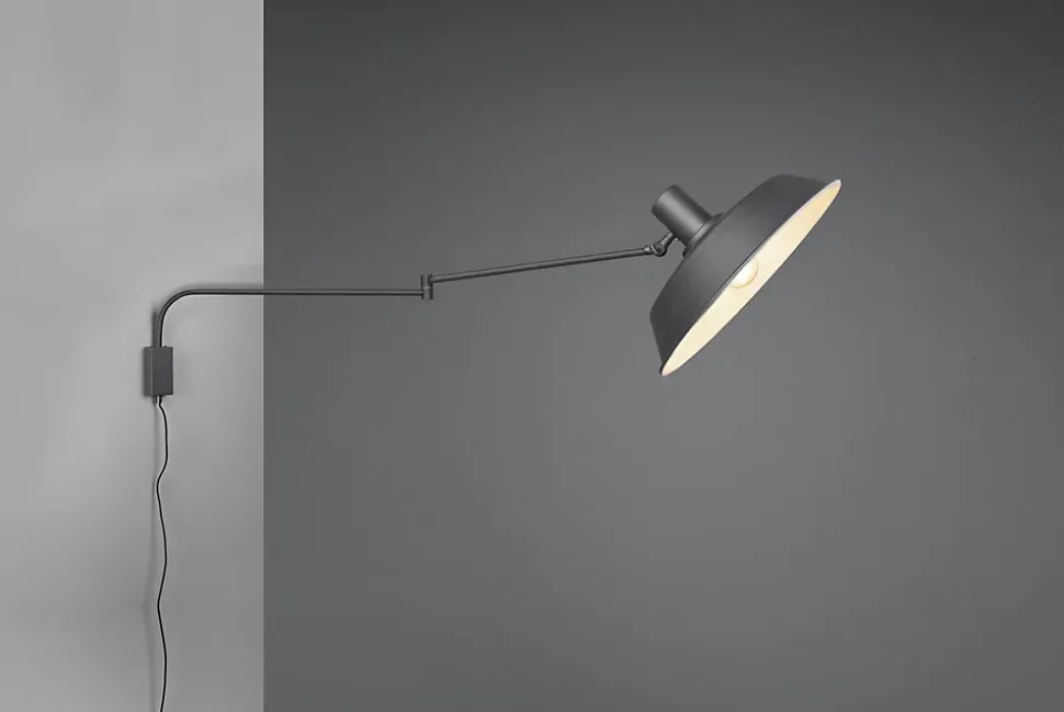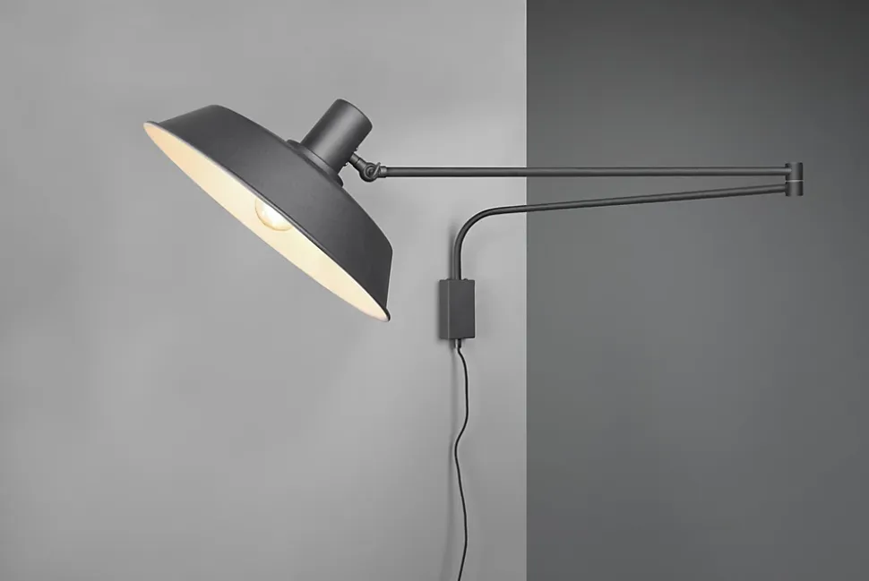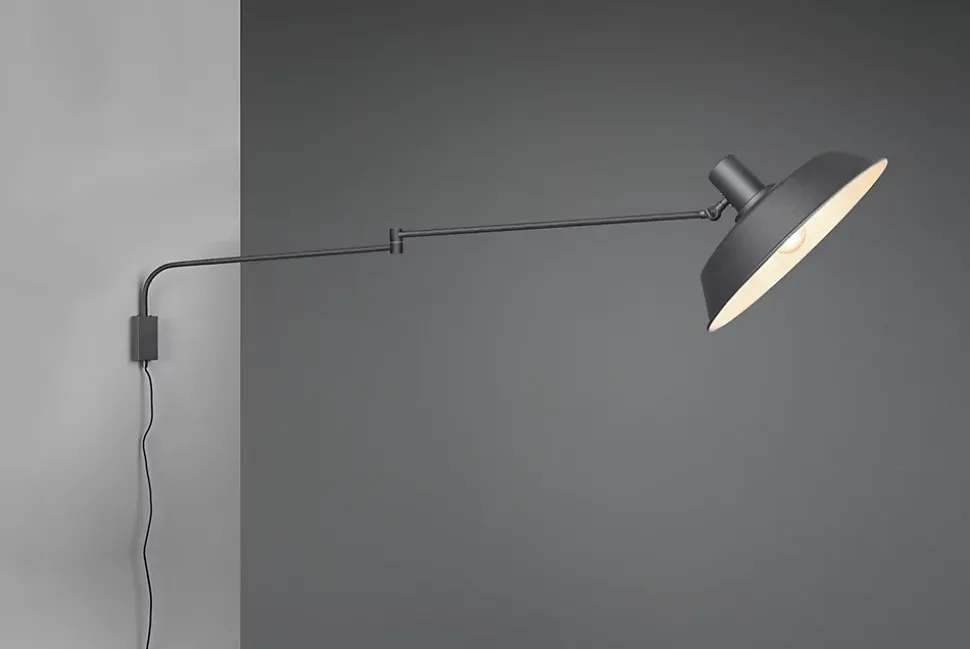 Un éclairage mural au style industriel moderneAvec l’applique murale Bolder de Trio, adoptez un style minimaliste et fonctionnel. Son bras et son abat-jour en métal noir mat sont entièrement orientables pour ajuster l’éclairage selon vos envies.Polyvalente et pratique au quotidienGrâce à sa grande projection de 150 cm, la Bolder est idéale comme liseuse au-dessus du canapé, mais aussi en applique dans une cuisine ou au-dessus d’une table. Son interrupteur à cordon intégré vous évite les contraintes de branchement mural direct.Design industriel et robusteFabriquée en métal noir mat, cette applique murale s’intègre parfaitement à un intérieur moderne ou industriel. Elle deviendra un élément décoratif à part entière.Compatible LED pour un éclairage économiquePrévue pour accueillir une ampoule E27 (max. 40W), elle est parfaite avec une ampoule LED à filament pour une ambiance chaleureuse et économe. Les ampoules LED offrent une longue durée de vie, une faible consommation d’énergie et réduisent l’échauffement.