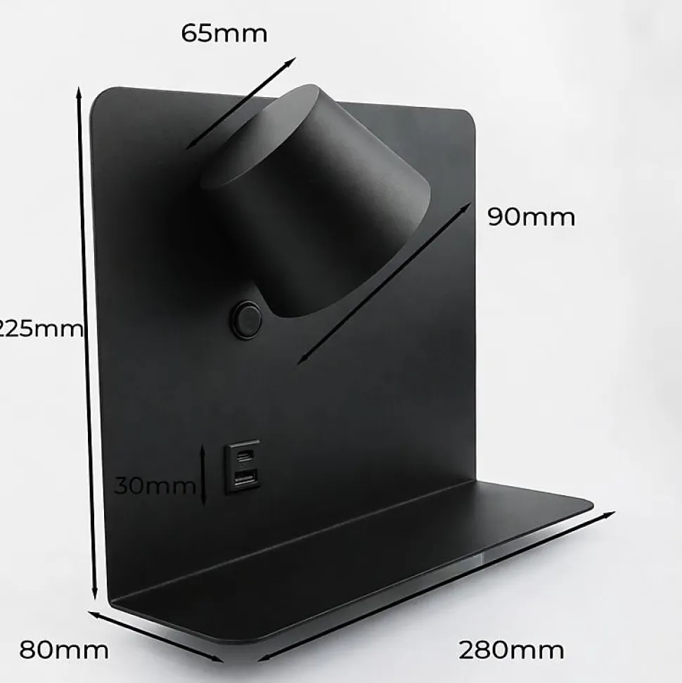 L’applique murale SION est une solution moderne et fonctionnelle pour les têtes de lit. Elle intègre un spot LED orientable de 6 W, inclinable jusqu’à 350°, offrant un éclairage précis et agréable.Elle est équipée de ports USB Type-A et USB Type-C pour une charge rapide, ainsi que d’un plateau métallique intégré pour y déposer des appareils ou autres objets. Le spot peut être installé à gauche ou à droite du lit.Caractéristiques principales :Spot LED orientable 6 W (520 lm)Installation à gauche ou à droiteUSB Type-A + USB Type-C (5 V/2 A)Interrupteur individuelTempérature de couleur sélectionnable : 2700 K / 4000 K / 6000 KIndice de protection IP20 (usage intérieur)Spécifications :Matériau : AluminiumDimensions : 280 × 220 mmCouleurs : Blanc, Gris, NoirDriver : KEGU | Puces LED : OsramRemarque : Câble de charge et appareils non inclus.