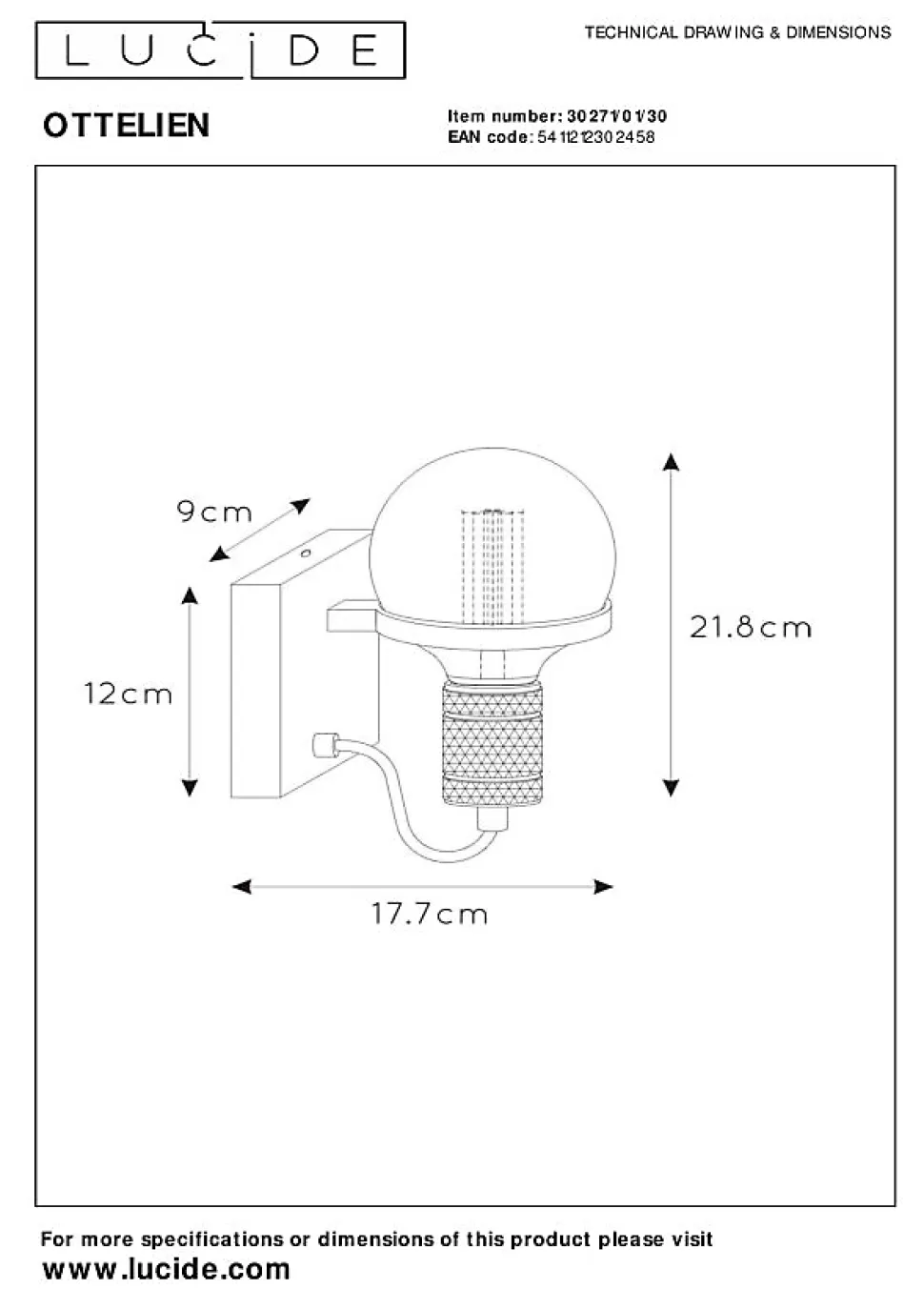 Ottelien, un nom particulier pour une applique murale exceptionnelle. Sa caractéristique la plus frappante est sans aucun doute sa coupe spéciale. L’ampoule semble en effet presque flotter. Ottelien n’a peut-être qu’un seul point lumineux, mais il rayonnera certainement dans toute la pièce. Beau, simple et fabriqué en acier de haute qualité. Que vouloir de plus ! Ce sont précisément ces éléments qui font que l’applique murale se sent chez elle dans un intérieur moderne mais aussi rustique. Même les amateurs de vintage et de rétro tomberont sous son charme. Connectez Ottelien à un gradateur de lumière et vous pourrez vous-même contrôler l’ambiance. Le luminaire mesure 17,7 x 21,8 centimètres. Vous pourrez facilement la monter au mur via la plaque de montage.Caractéristiques uniques:• Utilisable avec une source lumineuse LED• Facile à connecter à un variateur (non fourni)• Fabriqué en acierPrincipales caractéristiques du produit:• Consommation énergétique: 1x60W / 230V / A intensité variable (Ampoule non incluse)• Dimensions: Ø17,7 cm Haut.21,8 cm• 2 Ans garantie sur le luminaire / source de lumière appropriée est EAN: 5411212491053Pourquoi choisir l’éclairage Lucide?Lucide incarne un design innovant, un savoir-faire artisanal et une fiabilité exemplaire. En tant qu’entreprise familiale belge avec plus de trois décennies d’expertise, nous concevons des éclairages de haute qualité qui enrichissent et transforment chaque espace, tant intérieur qu’extérieur. Notre collection polyvalente comprend des luminaires durables et des sources lumineuses économes en énergie, soigneusement conçus par nos propres experts et fabriqués selon les normes CE les plus strictes. Grâce à notre large gamme, nous vous proposons toujours une solution d’éclairage adaptée, quel que soit le style ou l’espace. Ainsi, nous illuminons non seulement votre espace de vie mais aussi votre processus de choix dans la recherch…