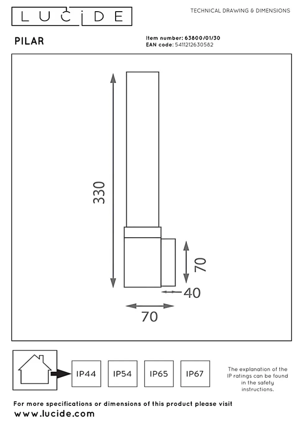 Caractéristiques uniques:• Utilisable avec une source lumineuse LED• Facile à connecter à un interrupteur mural (non fourni)• Fabriqué en verrePrincipales caractéristiques du produit:• Dessiné spécialement pour une utilisation fiable et de longue durée à l’extérieur (IP54)• Consommation énergétique: 1x6W / 230V / Sans intensité variable (Ampoule non incluse)• Dimensions: Lon.5 x Larg.7 x Haut.33 cm• 2 Ans garantie sur le luminaire / source de lumière appropriée est EAN: 5411212491398Pourquoi choisir l’éclairage Lucide?Lucide incarne un design innovant, un savoir-faire artisanal et une fiabilité exemplaire. En tant qu’entreprise familiale belge avec plus de trois décennies d’expertise, nous concevons des éclairages de haute qualité qui enrichissent et transforment chaque espace, tant intérieur qu’extérieur. Notre collection polyvalente comprend des luminaires durables et des sources lumineuses économes en énergie, soigneusement conçus par nos propres experts et fabriqués selon les normes CE les plus strictes. Grâce à notre large gamme, nous vous proposons toujours une solution d’éclairage adaptée, quel que soit le style ou l’espace. Ainsi, nous illuminons non seulement votre espace de vie mais aussi votre processus de choix dans la recherche d’un éclairage de qualité et abordable. Chez Lucide, nous combinons innovation et savoir-faire pour un éclairage qui ajoute non seulement de l’ambiance, mais transforme chaque maison en foyer.