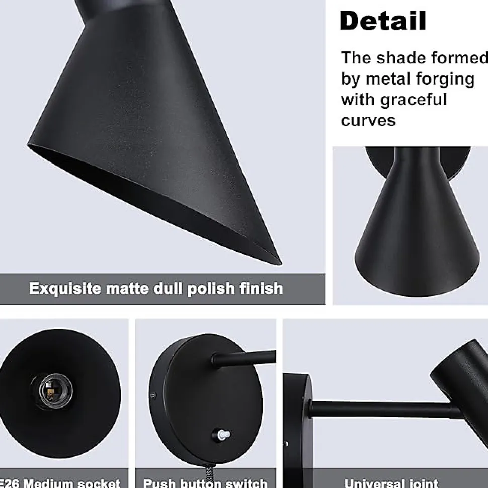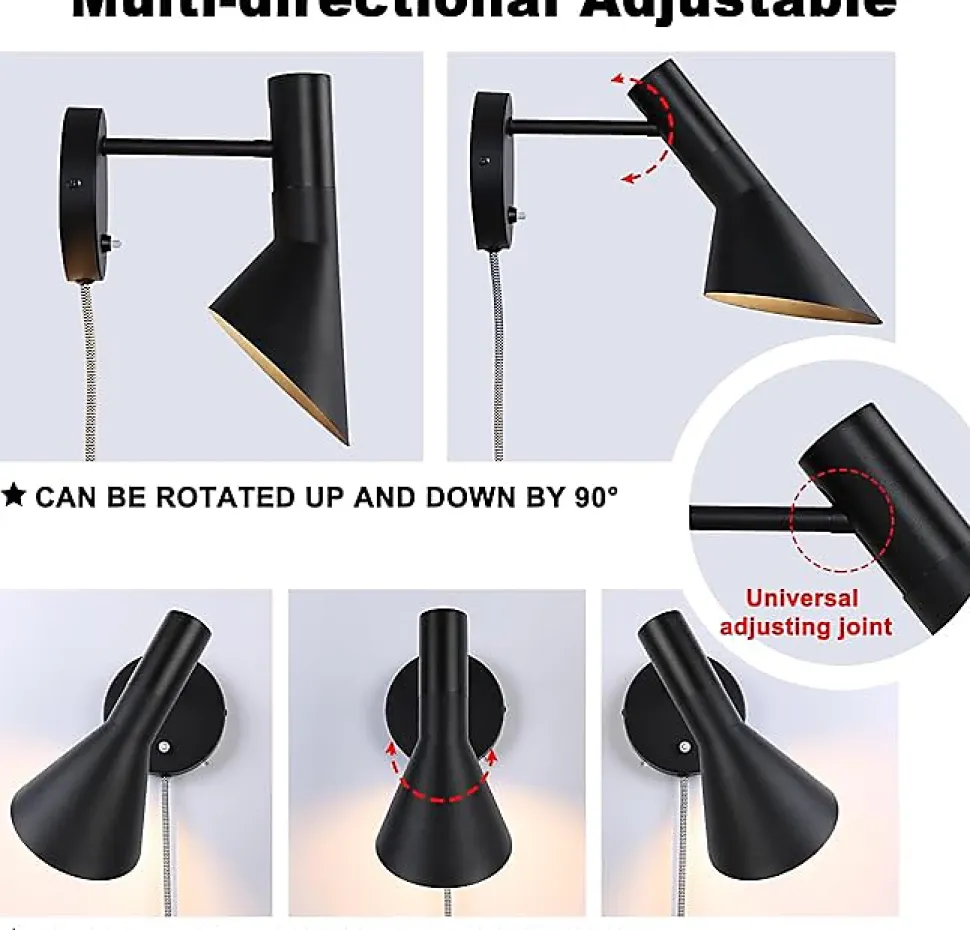 Applique mural pivotant avec câble prise et interrupteur Oslo – Design contemporain et élégant E27 Lapplique murale pivotante Oslo est une pièce de design contemporain fabriquée en aluminium avec des finitions de haute qualité. Sa structure à lignes épurées et géométriques ainsi que son abat-jour orientable permet de diriger la lumière de manière précise offrant un éclairage doux et ciblé. Caractéristiques principales du produit Design élégant Son design inspiré du minimalisme et de la modernité en fait un choix idéal pour tout environnement sadaptant parfaitement aux chambres salons et bureaux. Abat-jour asymétrique Labat-jour orientable dirige la lumière vers le bas tandis que lintérieur blanc de labat-jour assure une lumière douce et uniforme. Couleurs disponibles Disponible en blanc noir et gris pour sadapter à différents styles décoratifs. Installation facile Facile à installer en vissant la base métallique au mur. Tous les accessoires nécessaires à linstallation sont inclus. Câble avec interrupteur Lapplique est équipée dun câble de 115 m avec une prise européenne et dun interrupteur intégré à la base pour une utilisation confortable. Idéale pour une installation comme lampe de lecture ou décoration de tête de lit cette applique murale Oslo combine fonctionnalité et style de manière harmonieuse. Sa polyvalence lui permet de sadapter à diverses exigences déclairage dans nimporte quel espace intérieur.