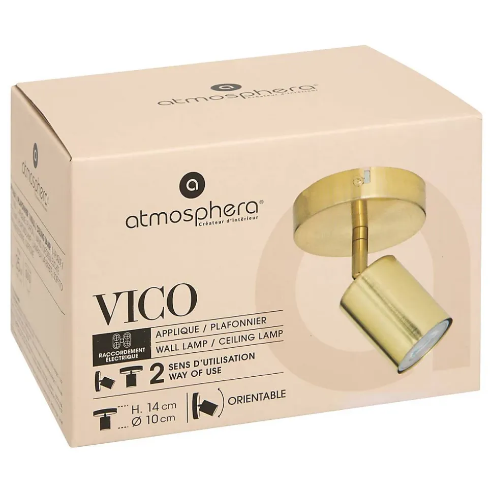 Si vous aimez les luminaires chaleureux, alors l’applique Vico Atmosphera vous plaira assurément. Tout en métal, cette applique apportera une touche contemporaine dans votre intérieur. Le spot orientable s’adapte facilement à tous vos besoins d’éclairage dans votre pièce. Équipez votre applique Vico avec une ampoule Atmosphera d’un blanc chaud pour profiter d’un bon éclairage dans un coin lecture. Spot orientable Type d’ampoule GU10 Ampoule non incluse Puissance maximale : 25 W Alimentation secteurComment déballer l’applique VICO? Lors de l’ouverture de votre colis, veillez à ne pas enfoncer une lame trop profondément pour éviter d’endommager le produit. Retirez les éléments de protection et d’emballage avec précaution, sans utiliser d’outils tranchants. Comment monter l’applique VICO ? Avant de commencer le montage, protégez votre surface de travail pour éviter tout dommage. Suivez attentivement les instructions de la notice incluse dans l’emballage. Applique à monter soi-même. 1 personne requise pour le montage. Temps de montage : 10 minutes Conservez l’emballage et la notice quelques jours en cas de retour ou de démontage. Consultez les consignes de tri de votre commune pour recycler correctement votre emballage. Comment entretenir l’applique VICO? Dépoussiérez régulièrement votre applique VICO à l’aide d’un chiffon doux.Dimensions produit : D.10 x H.14 cmPoids : 0,21 Kg