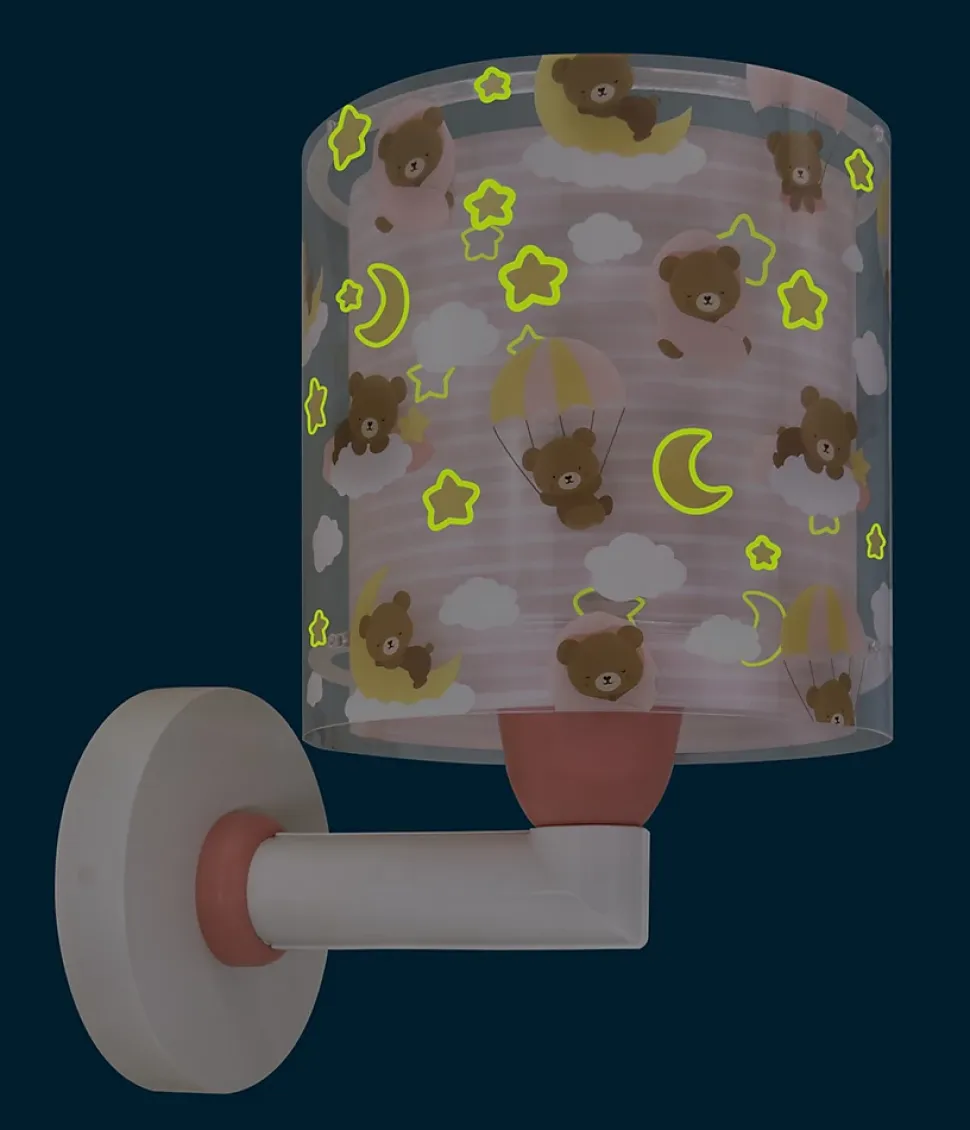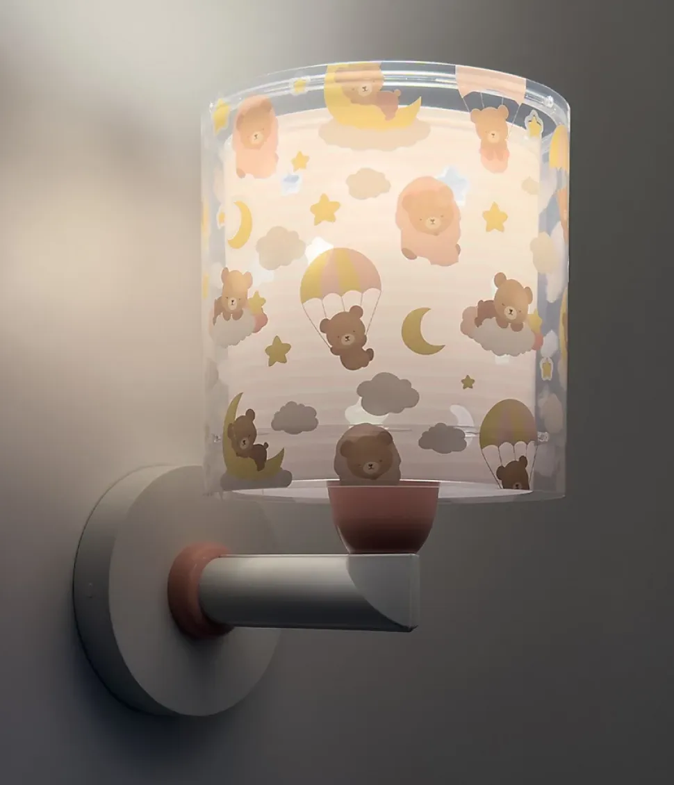 Applique murale pour chambre Baby TeddyL’applique murale Baby Teddy Rose enveloppe la chambre d’enfant de tendresse et de sérénité. Avec ses adorables oursons sur des nuages, elle crée une ambiance chaleureuse qui accompagne les rêves et les jeux du bébé. Une lumière décorative qui ajoute douceur et fantaisie à l’espace.