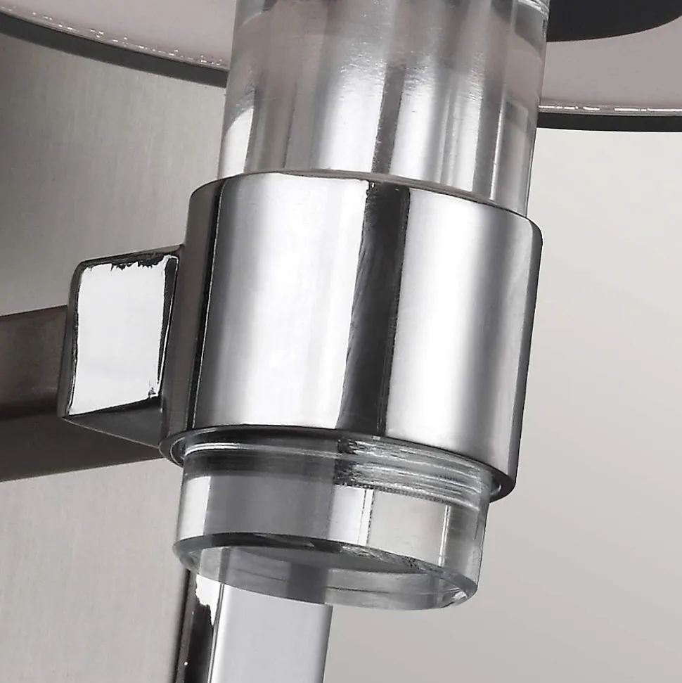 La Prospect Park prend un profil traditionnel et le modernise avec des éléments de design actualisés pour créer une ambiance d’époque dans les quartiers chics. Les bras élégants en nickel satiné sont accentués par des éléments chromés nets, et des bandes chromées se trouvent en haut et en bas de chaque abat-jour cylindrique en verre opale gravé. Le cristal clair pressé sur chaque tige rehausse le look sur mesure avec un peu de glamour.