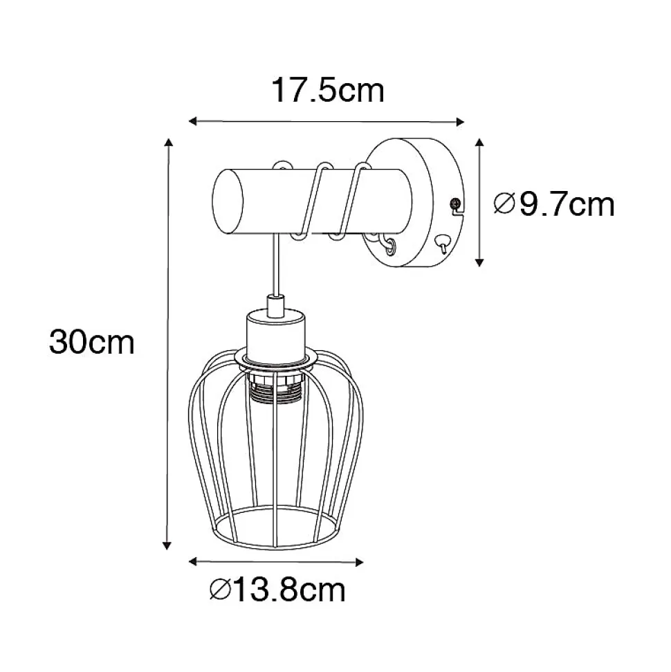 Vous recherchez une applique murale d’ambiance ? Stronk est faite pour vous ! Un luminaire mignon et rustique. L’applique murale est en bois et acier, l’acier étant fini en noir. Elle mesure 17,5 cm de profondeur, 30 cm de hauteur et 13,8 cm de longueur. La plaque de montage mesure 2,5 cm de profondeur et 9,7 cm de diamètre. L’abat-jour en acier a un diamètre de 13,8 cm et une hauteur de 13,5 cm. Vous pouvez compléter l’applique murale avec une ampoule à culot E27 (60W maximum). N’oubliez pas de la commander séparément. Stronk est compatible avec un variateur externe (non inclus). Créez une ambiance cosy dans votre intérieur avec l’applique murale rustique Stronk.