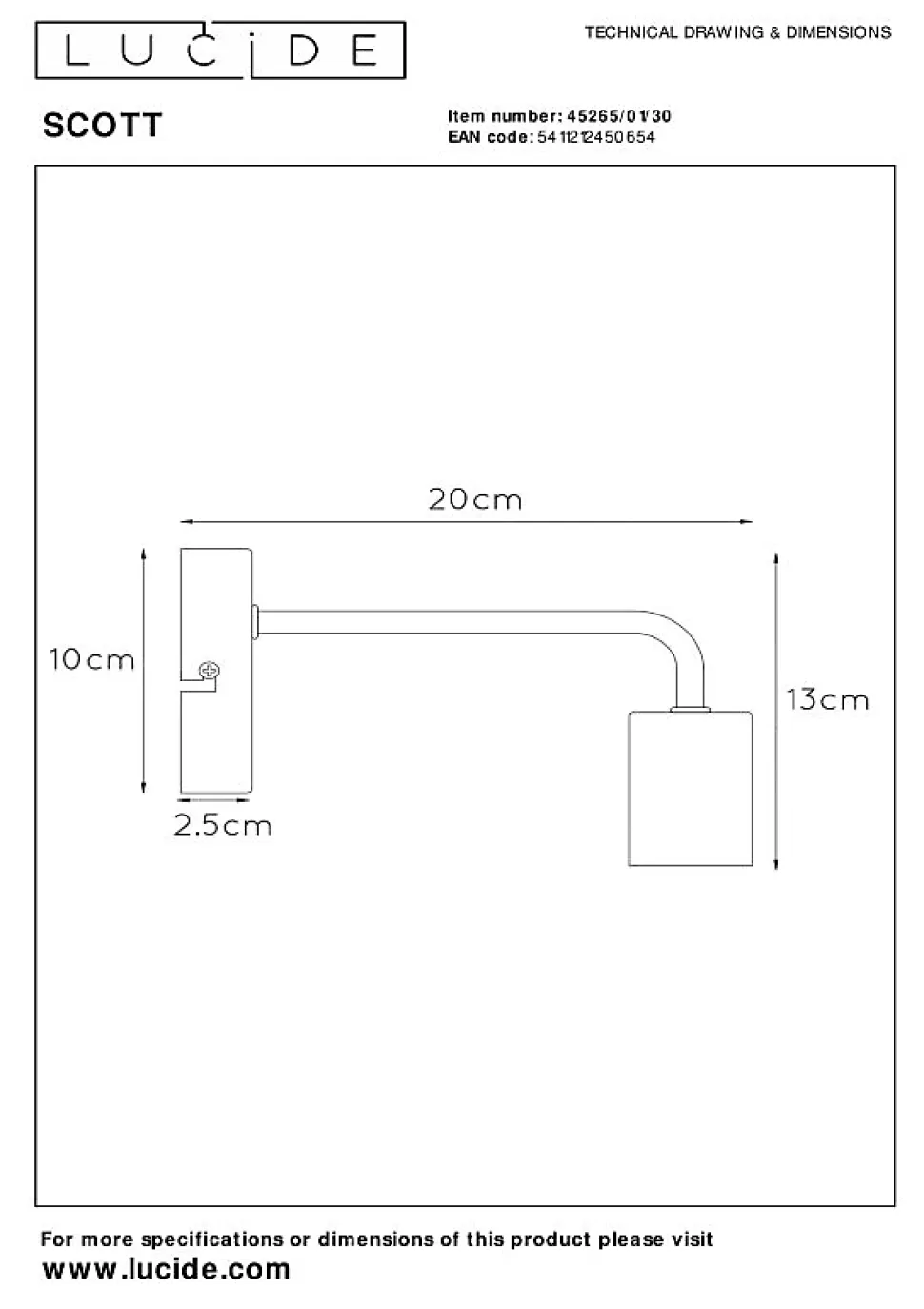 Pourquoi compliquer le design d’une applique murale quand la pureté peut être si belle ? Scott est une applique murale qui brille de par sa simplicité. La belle finition en métal laqué mat offre un résultat simple et accrocheur. Surtout lorsque vous combinez plusieurs exemplaires. Pour par exemple créer une belle ambiance dans une pièce. Ou comme éclairage subtil dans une toute petite pièce. Où que vous installiez Scott : optez pour une ampoule à filament comme ampoule. Vous pourrez de cette manière créer une atmosphère supplémentaire avec cette applique murale subtile.Caractéristiques uniques:• Utilisable avec une source lumineuse LED• Facile à connecter à un variateur (non fourni)• Fabriqué en métalPrincipales caractéristiques du produit:• Consommation énergétique: 1x40W / 230V / A intensité variable (Ampoule non incluse)• Dimensions: Lon.20 x Larg.10 x Haut.13 cm• 2 Ans garantie sur le luminaire / source de lumière appropriée est EAN: 5411212491046Pourquoi choisir l’éclairage Lucide?Lucide incarne un design innovant, un savoir-faire artisanal et une fiabilité exemplaire. En tant qu’entreprise familiale belge avec plus de trois décennies d’expertise, nous concevons des éclairages de haute qualité qui enrichissent et transforment chaque espace, tant intérieur qu’extérieur. Notre collection polyvalente comprend des luminaires durables et des sources lumineuses économes en énergie, soigneusement conçus par nos propres experts et fabriqués selon les normes CE les plus strictes. Grâce à notre large gamme, nous vous proposons toujours une solution d’éclairage adaptée, quel que soit le style ou l’espace. Ainsi, nous illuminons non seulement votre espace de vie mais aussi votre processus de choix dans la recherche d’un éclairage de qualité et abordable. Chez Lucide, nous combinons innovation et savoir-faire pour un éclairage qui ajoute non seulement de l’ambiance, mais transforme chaque maison …