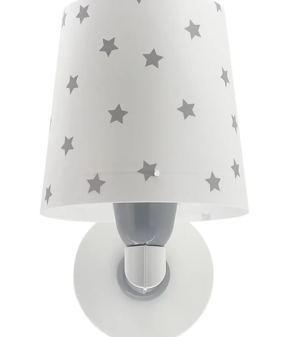 Applique murale avec étoiles Star Light blancL’applique murale avec étoiles pour enfants de la nouvelle collection Star Light en blanc, pour le mur de la chambre des enfants, aura un beau motif d’étoiles et la lumière dont elles ont besoin. Il est installé directement sur le mur et vous pouvez l’utiliser à la fois avec une installation directe sur le réseau électrique et via le câble avec un interrupteur.L’applique avec étoiles de la collection Star Light est en polypropylène transparent et a un effet fluorescent, de sorte que les étoiles brilleront dans le noir pendant quelques minutes lorsque les plus petits éteignent les lumièresCombinez l’applique Star Light avec le reste des lampes de la collection pour obtenir un ensemble très original et coloré