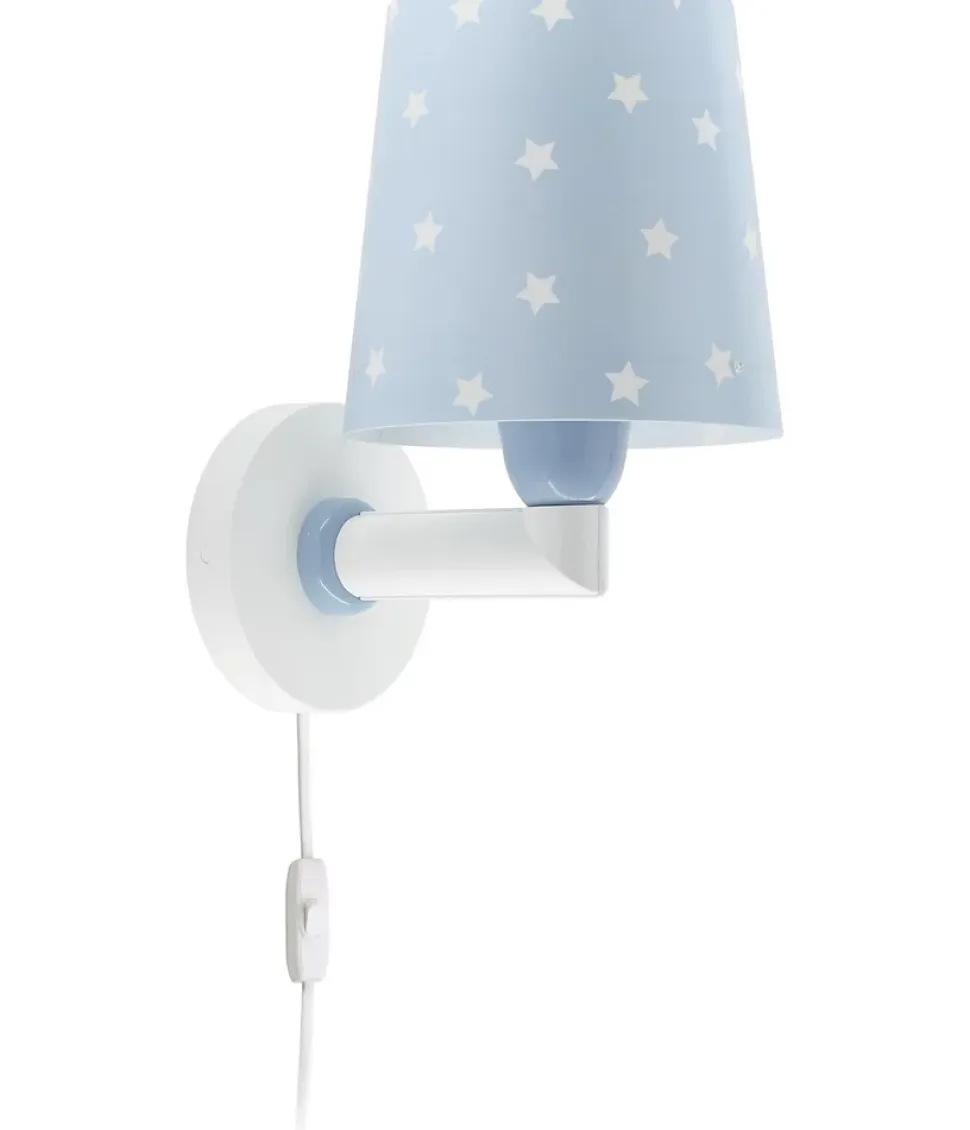 Applique murale avec étoiles Star Light bleuL’applique murale avec étoiles pour enfants de la nouvelle collection Star Light en bleu, pour le mur de la chambre des enfants, aura un beau motif d’étoiles et la lumière dont elles ont besoin. Il est installé directement sur le mur et vous pouvez l’utiliser à la fois avec une installation directe sur le réseau électrique et via le câble avec un interrupteur.L’applique avec étoiles de la collection Star Light est en polypropylène transparent et a un effet fluorescent, de sorte que les étoiles brilleront dans le noir pendant quelques minutes lorsque les plus petits éteignent les lumièresCombinez l’applique Star Light avec le reste des lampes de la collection pour obtenir un ensemble très original et coloré