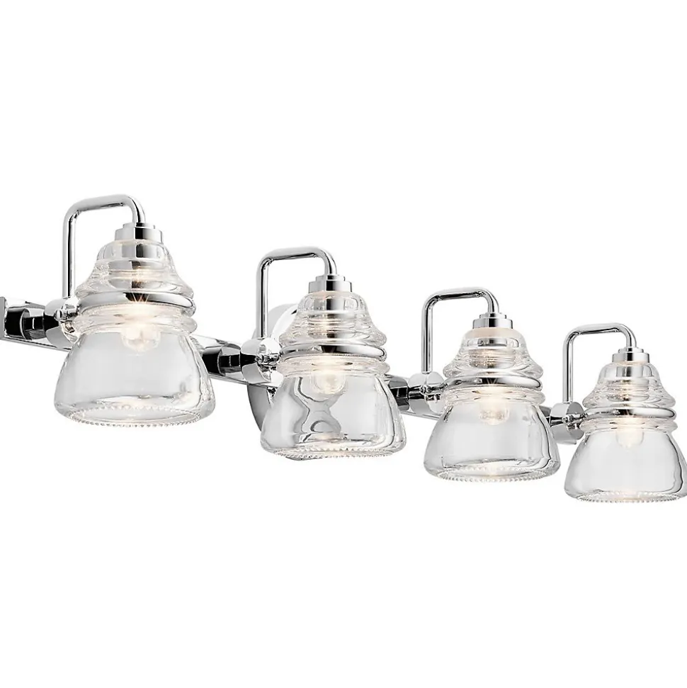 L’applique murale Talland 4 lumières présente un style vintage et féminin. Le verre unique rappelle les luminaires que l’on trouvait sur les poteaux télégraphiques et électriques au début et au milieu des années 1900. Elle est finie en chrome et est conforme à la norme IP44 pour votre salle de bains.