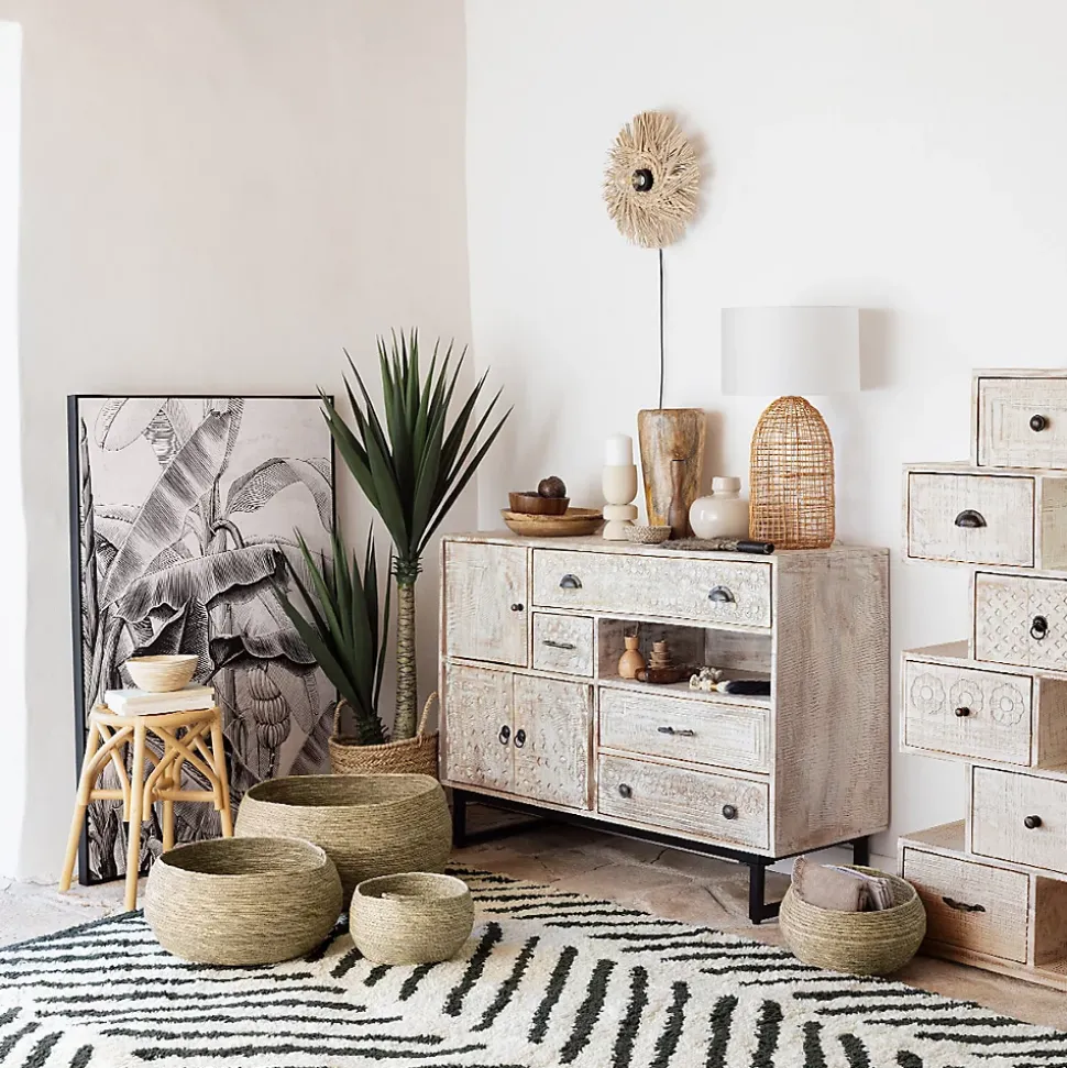 Craquez pour l’applique murale « Tea » Atmosphera et faites souffler une ambiance ethnique chic dans votre univers déco !Des matières naturellesL’applique murale « Tea » est composée d’une structure cylindrique en métal, entièrement habillée de tiges de roseau qui déposeront une touche exotique dans une pièce. Ses dimensions raisonnables vous permettront de la fixer dans une entrée comme dans une pièce de vie. Cette applique filaire est commandée par un interrupteur.Installez votre applique murale « Tea » près d’une console en bois de manguier Atmosphera et profitez d’un ensemble harmonieux !Le petit plus décoAjoutez un une ampoule LED et quelques paniers en roseau tressé près de votre applique afin de créer un rappel plein de caractère.