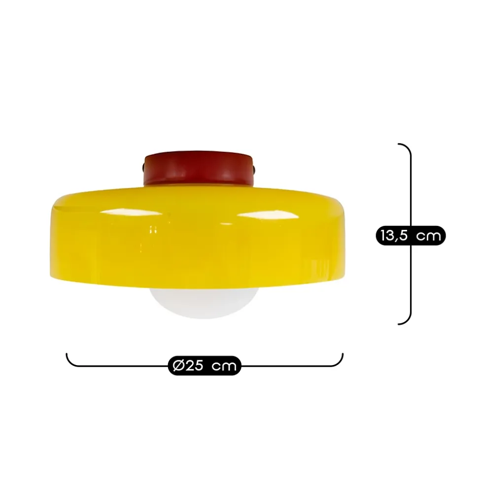 - La sphère opaline diffuse une lumière douce et homogène, tandis que le réflecteur coloré ajoute une subtile touche dorée à l’éclairage.